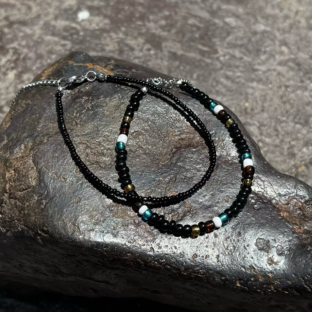 (อุดหนุนงานไทย) กำไลข้อเท้า สร้อยข้อเท้า ลูกปัด เครื่องประดับ แฟชั่น สีขาว สีดำ