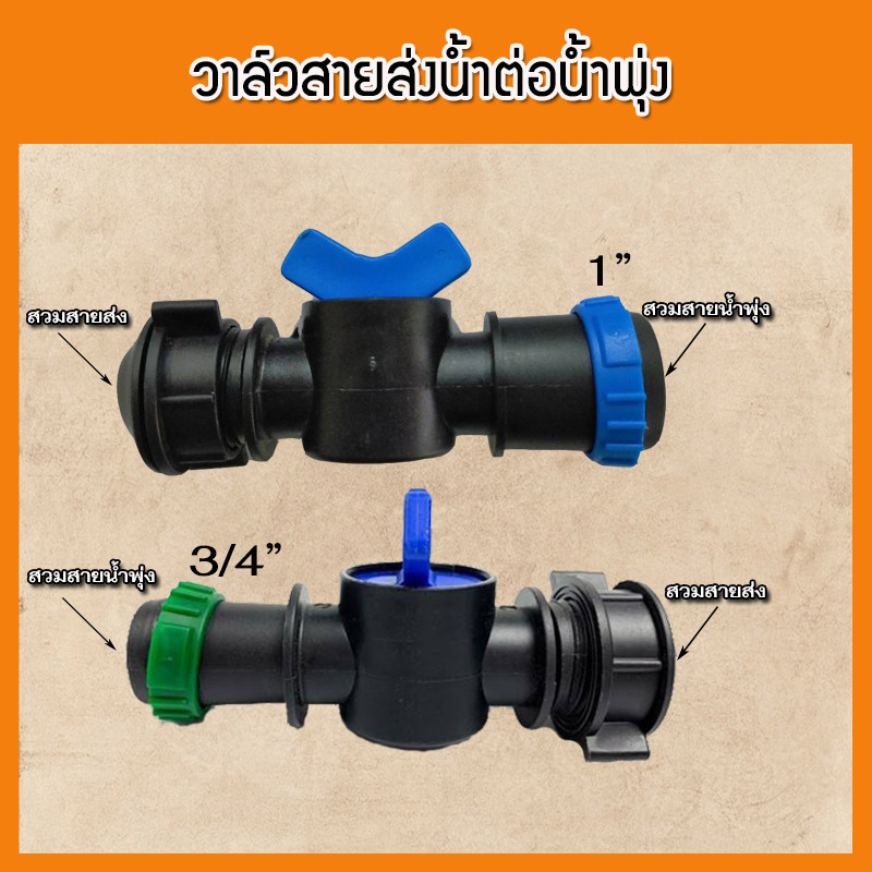 (แพ็ค 10 ตัว)วาล์วเทปน้ำพุ่ง สายส่งผ้าใบ+สายน้ำพุ่ง ขนาด 6หุน(25มิล) 1 นิ้ว(30มิล) (ก้นหอย)