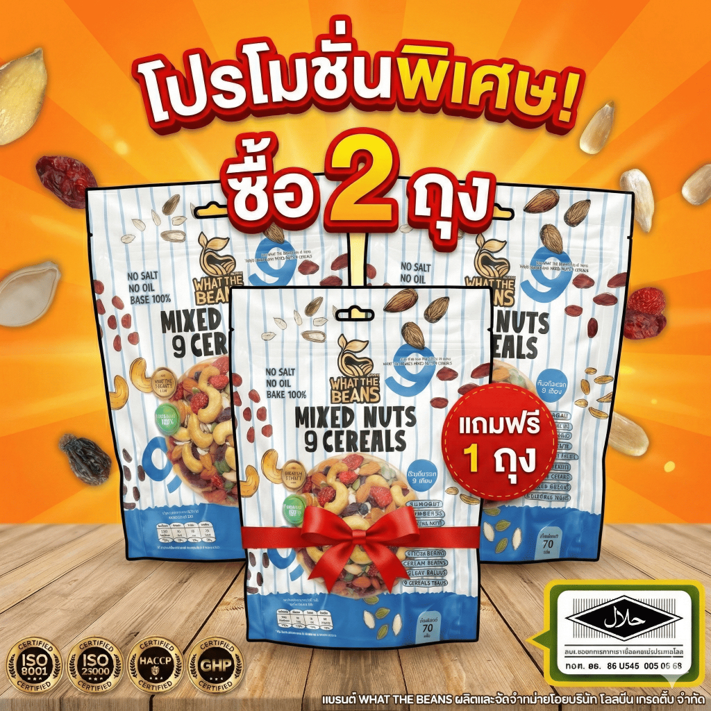 ธัญพืชรวม 9 เซียน 70 กรัม WHAT THE BEANS (ตระกร้าบริษัท) ไม่ปรุงรส อัลมอนด์/แครนเบอรี่/เมล็ดมะม่วง/เมล็ดแตงโม/เมล็ดทานตะ