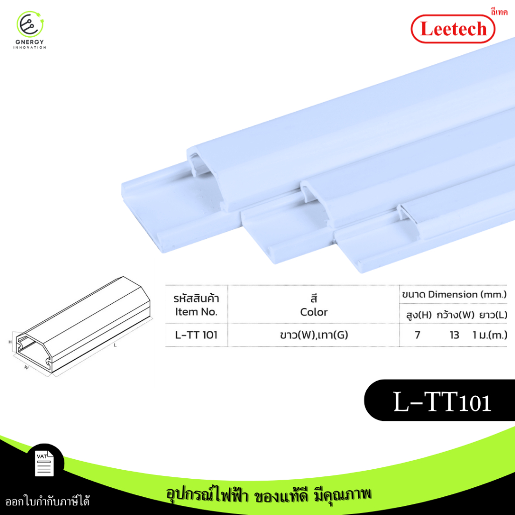 (สีขาว)Leetech รางเก็บสายไฟ รางเก็บสายโทรศัพท์ pvc ความยาว 1เมตร มีเทปกาวด้านหลัง