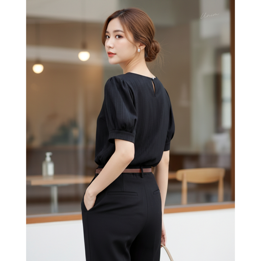 Unim เสื้อคอวีแขนเจ้าหญิงดำ (เนื้อผ้าBobby)