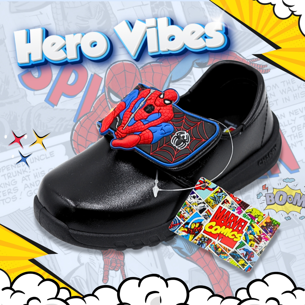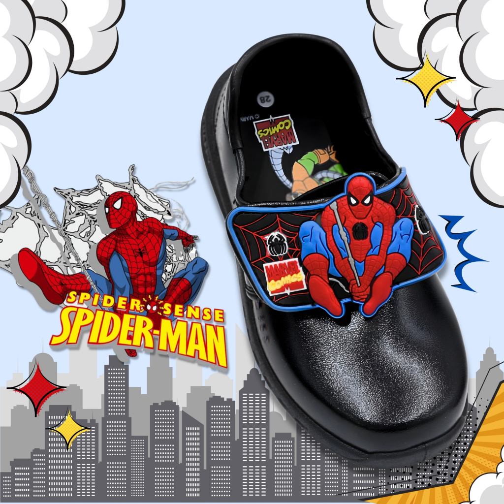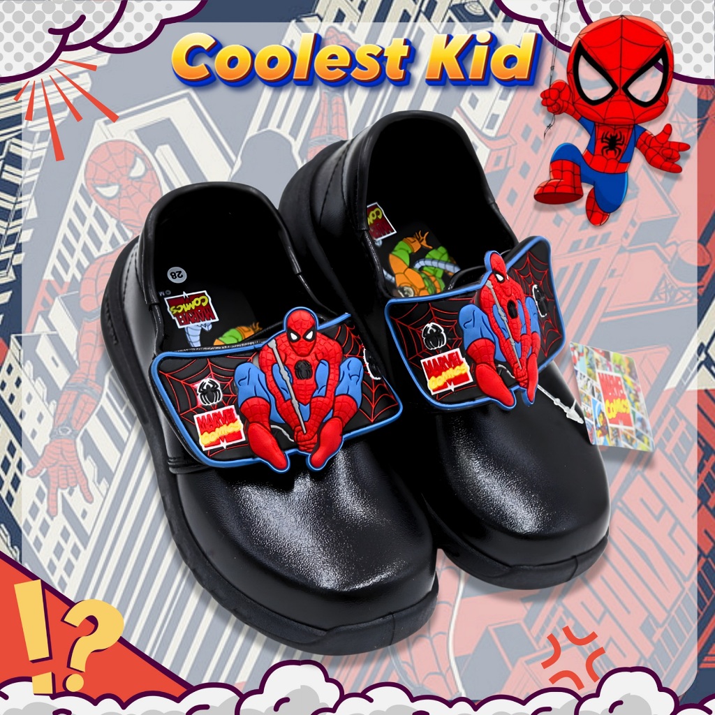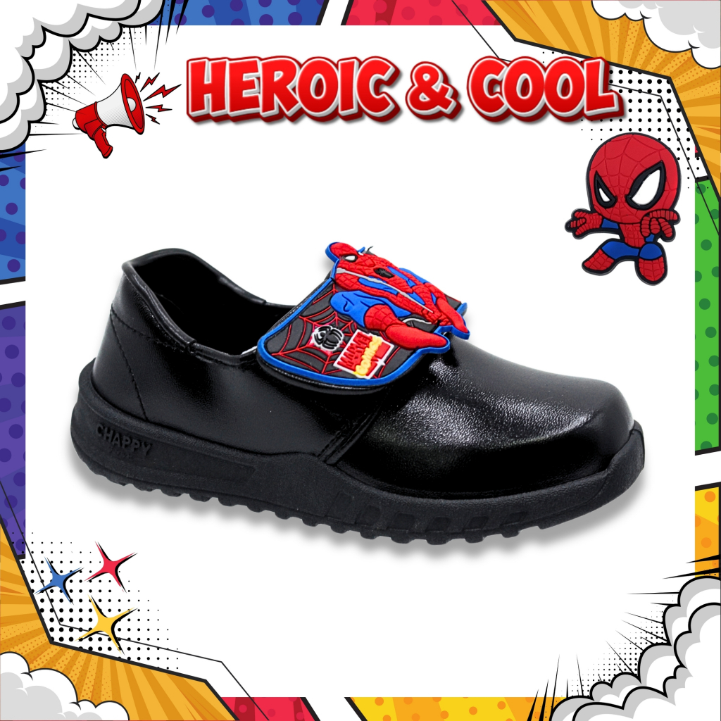 รวมแบบรองเท้านักเรียนอนุบาล ผู้ชาย การ์ตูนลิขสิทธิ์ สไปเดอร์ CHAPPYสีขาว - สีดำ ไซซ์ 25-35