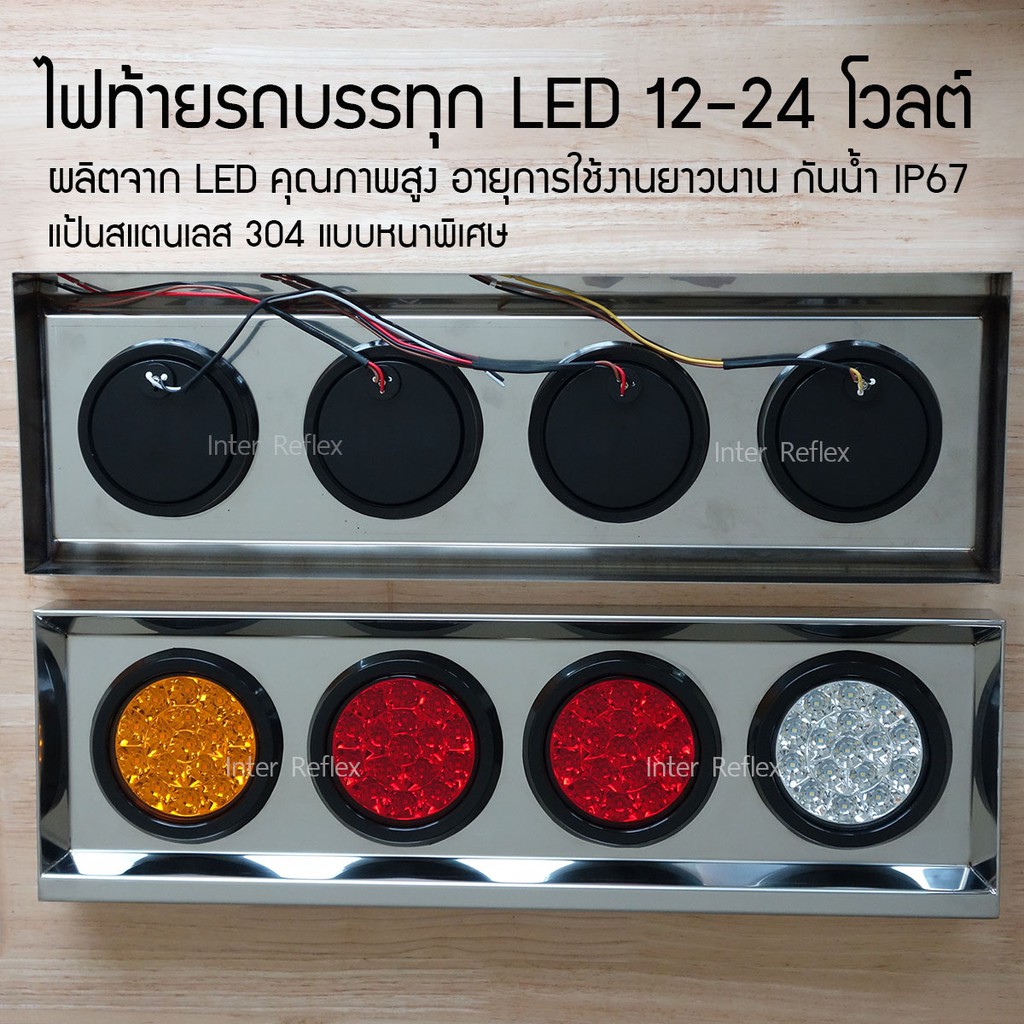 ไฟท้ายรถบรรทุก LED 24V ไฟท้าย ไฟเลี้ยว ไฟถอย พร้อมกรอบสแตนเลส แบบหนา จำนวน 1 คู่ ซ้าย ขวา