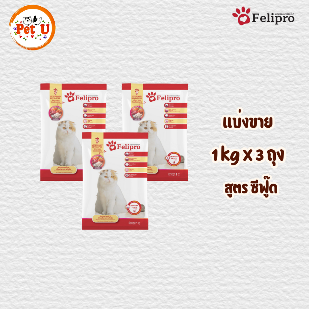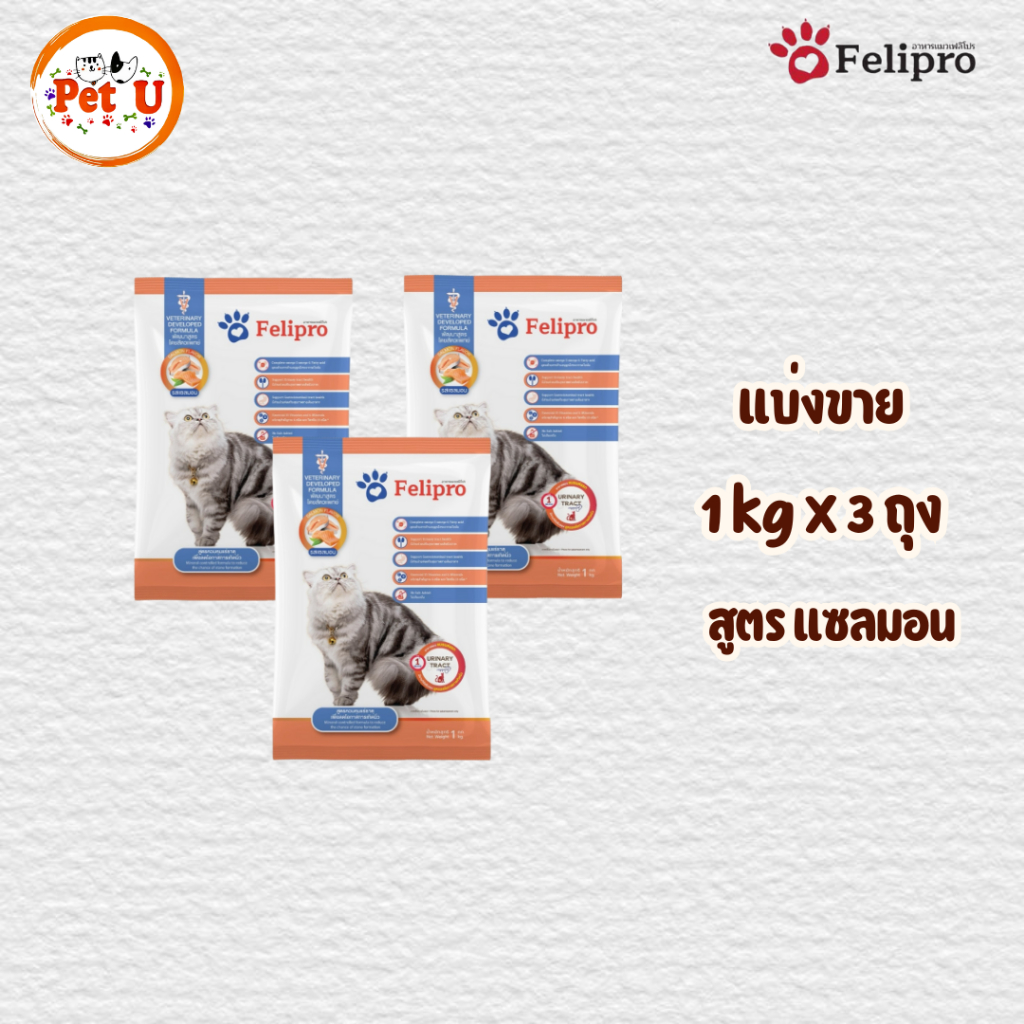 (1 kg x 3 ถุง)Felipro อาหารแมวเฟลิโปร 4 รสชาติ ลดโอกาสการเกิดนิ่ว ถุงแบ่งขนาด 1 kg