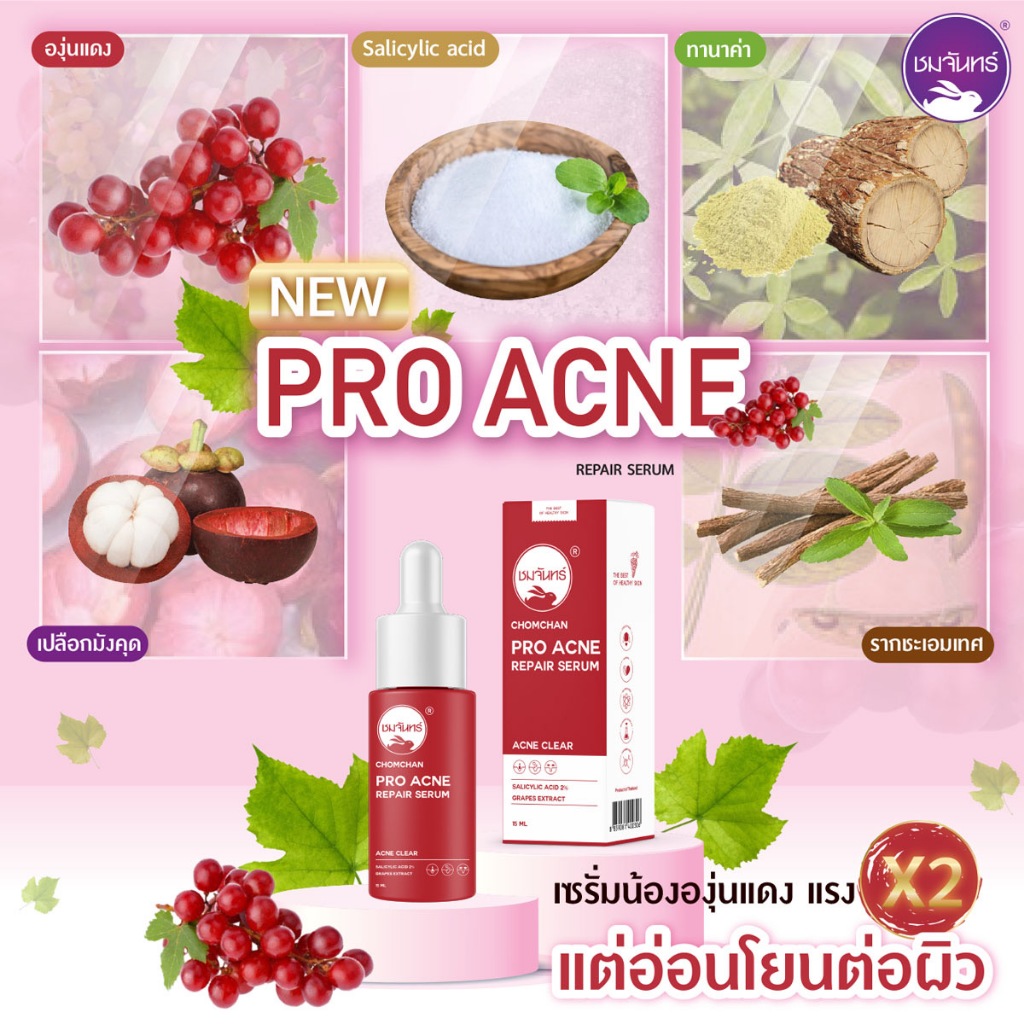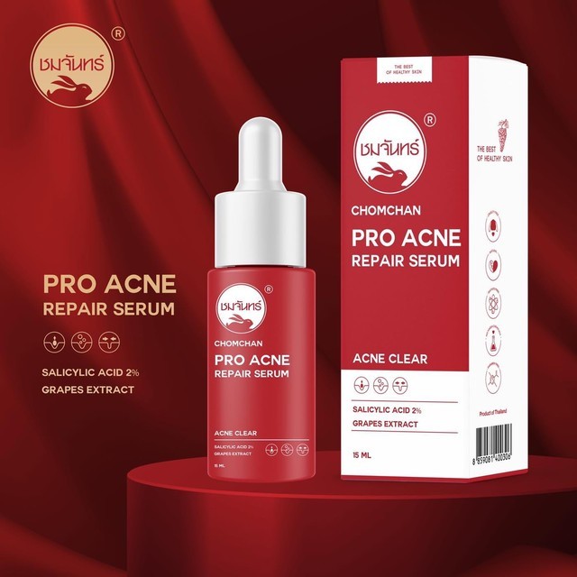 ชมจันทร์ โปร แอคเน่ รีแพร์ เซรั่มองุ่นแดง 15มล. CHOMCHAN Pro Acne Repair Serum