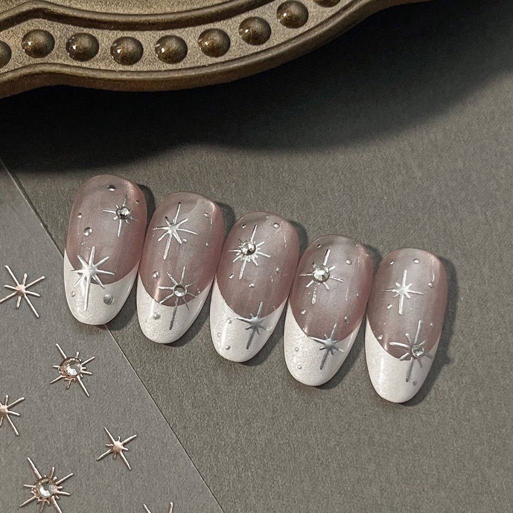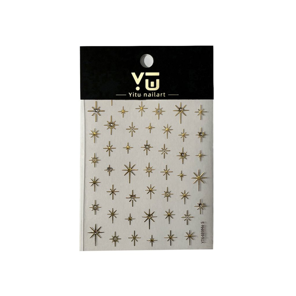 UYIKE สติ๊กเกอร์ติดเล็บสี่แฉกประกายนูน 3 มิติพร้อมคริสตัลเพชรและฟอยล์สีทอง, ขายส่งของ Viral อินเทรนด์ตกแต่งเล็บ