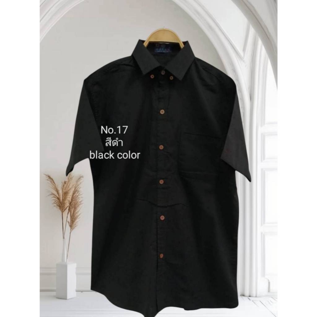 ORCAN เสื้อเชิ้ตแขนสั้น ไซส์ใหญ่ผ้าอ๊อกซ์ฟอร์ด สีดำไซส์ 3XL/4XL/6XL
