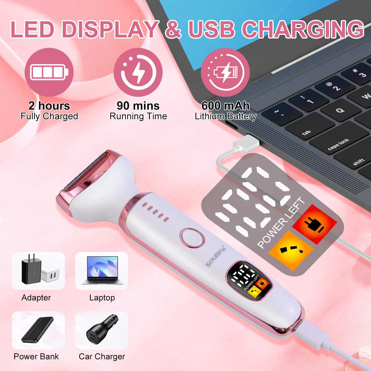เครื่องโกนหนวดไฟฟ้า Solipia 5-In-1 สําหรับผู้หญิงเครื่องตัดบิกินี่แบบชาร์จไฟได้และมีดโกนผมหัวหน่าว