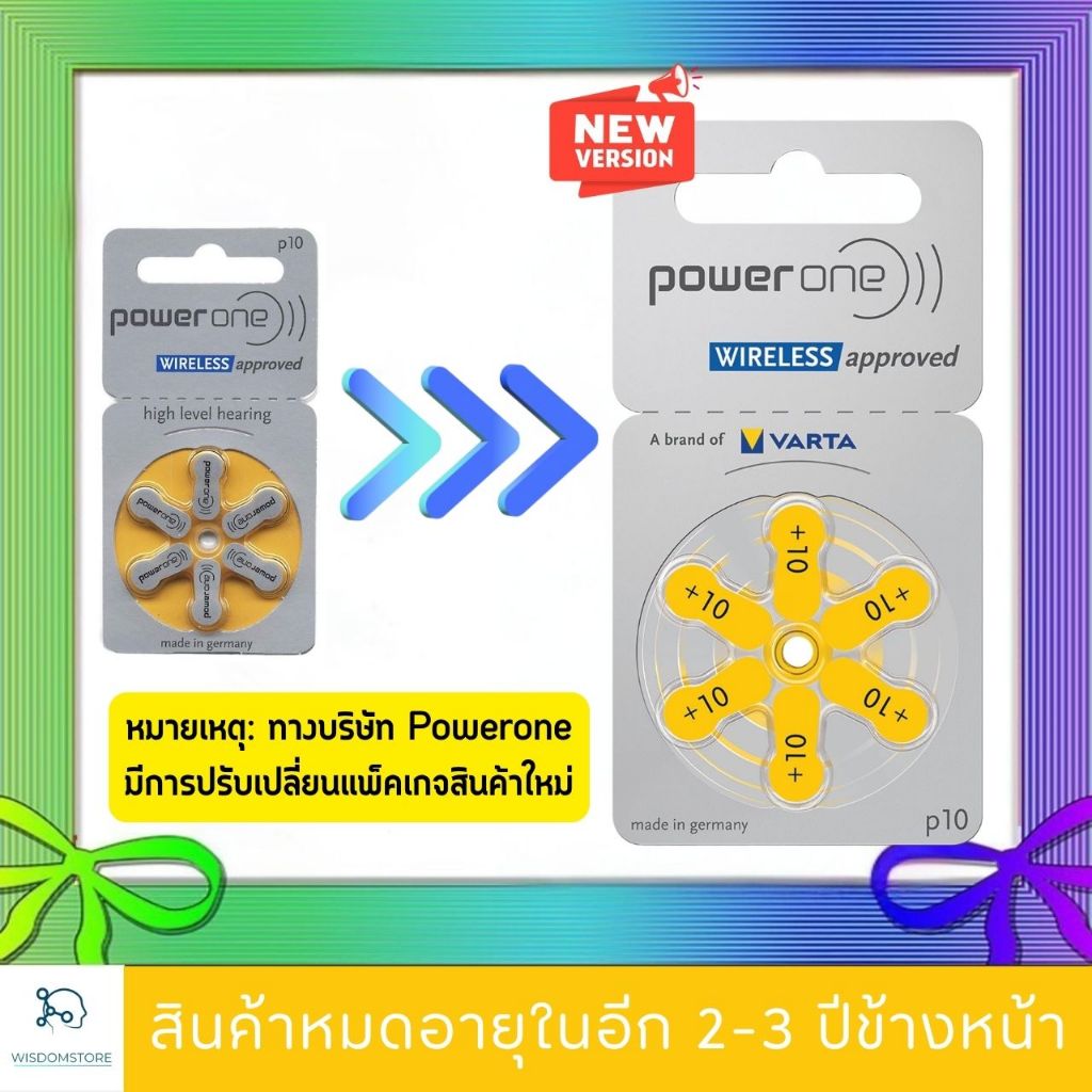 [แท้100% รุ่นใหม่] ถ่านเครื่องช่วยฟัง Powerone เบอร์ 10 แพ็ค 6 ก้อน ถ่านหูฟัง 10