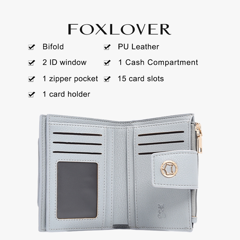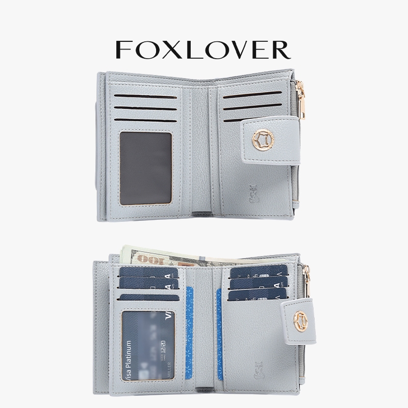 FOXLOVER กระเป๋าสตางค์ผู้หญิง สไตล์สั้น เล็กและเบา เรียบง่ายและมีคุณภาพสูง กล่องของขวัญ