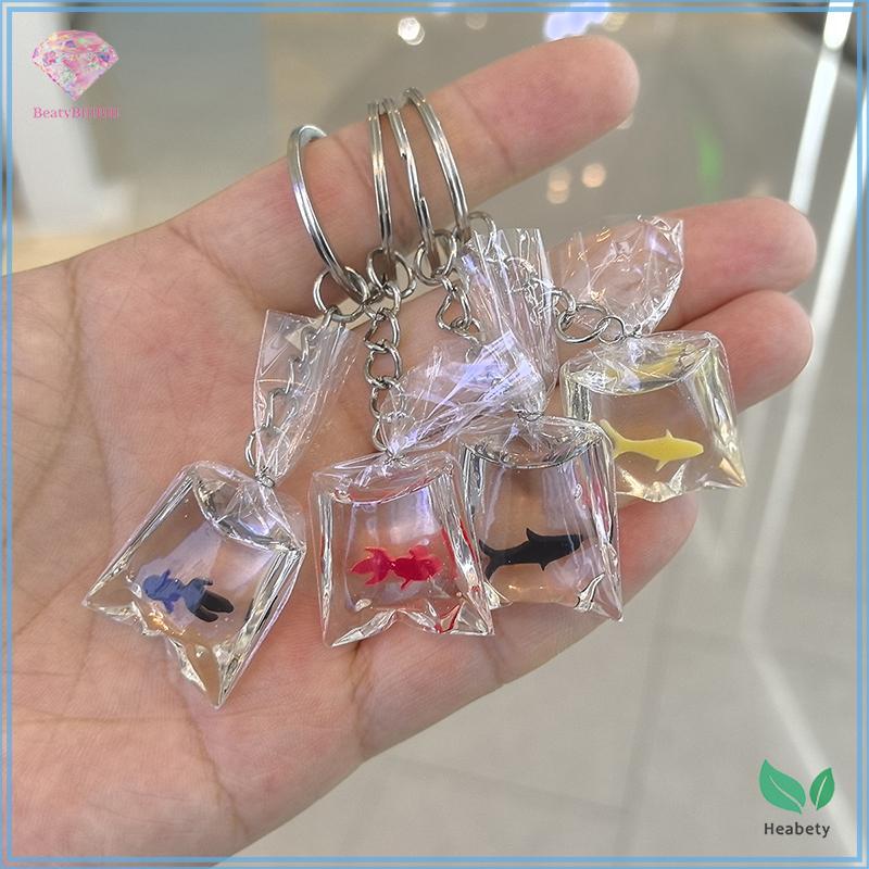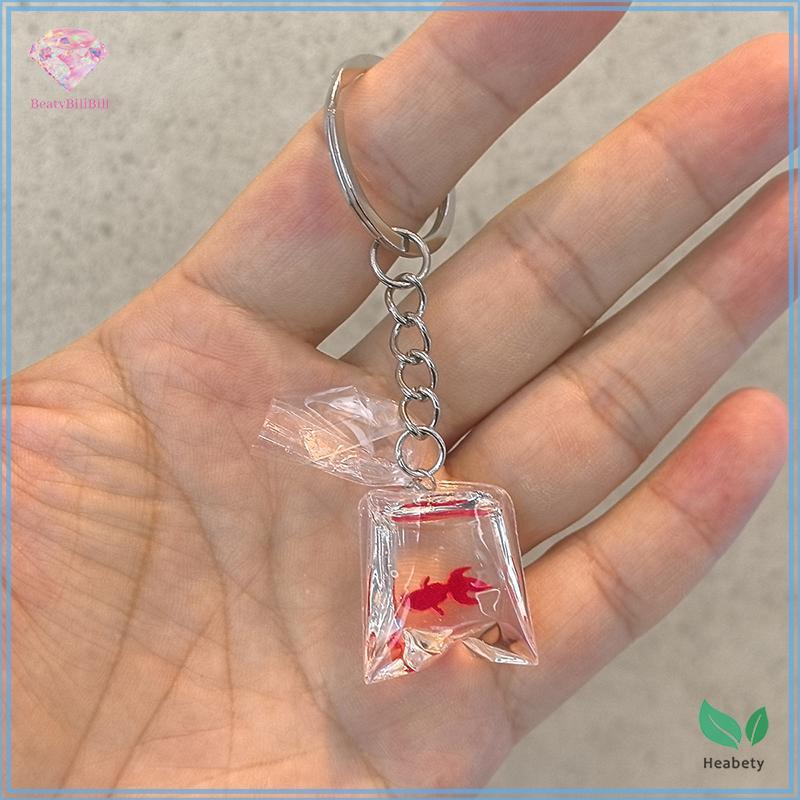 เฮอะเบตี้ สร้างสรรค์จําลองปลาทองปลาคาร์พพวงกุญแจส่วนบุคคลใสปลาพวงกุญแจจี้ประณีตกระเป๋าเป้สะพายหลังตกแต่งของขวัญใหม่