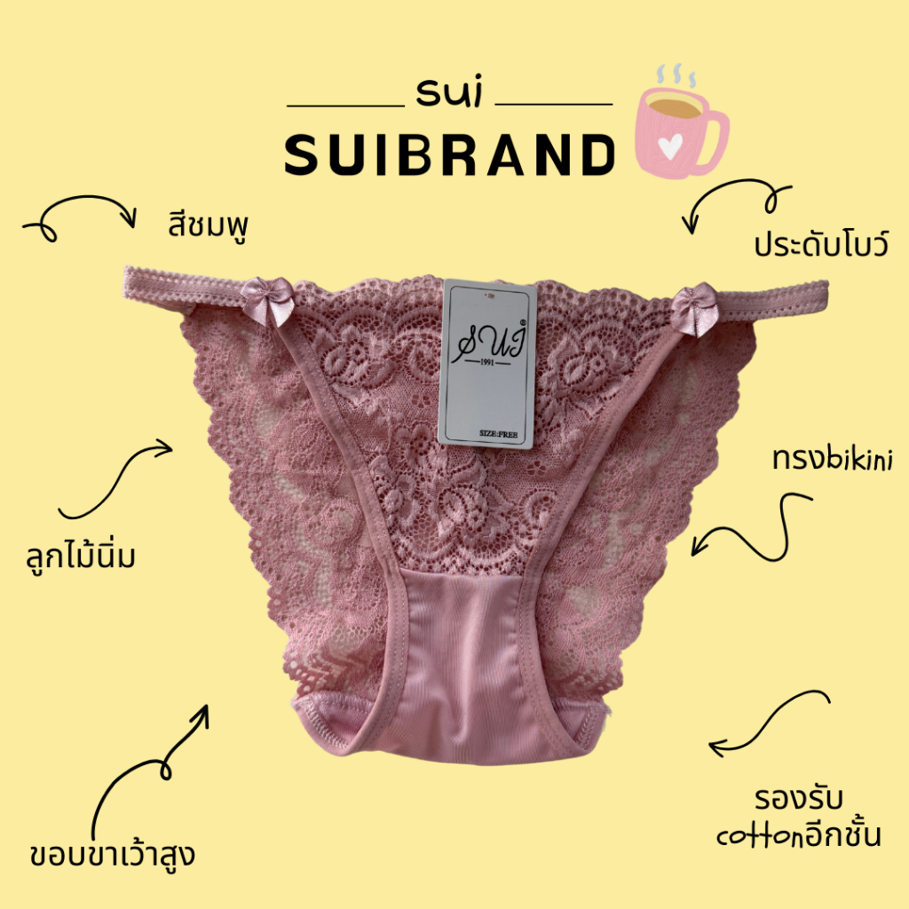 SUI กางเกงชั้นในลูกไม้ (226) กางเกงในโชว์ขอบ ทรงขาเว้าสูง บิกินี่ เซ็กซี่ นิ่ม ประดับโบว์ สำหรับผู้หญิง ส่งไว หลากหลายสี