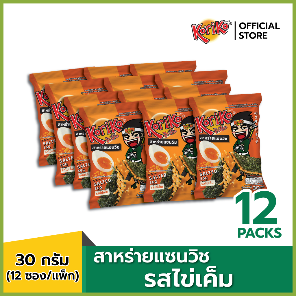 ( แพ็ก 12 ซอง ) Koriko สาหร่ายแซนวิชสอดไส้ข้าวพอง ขนาด 30 กรัม