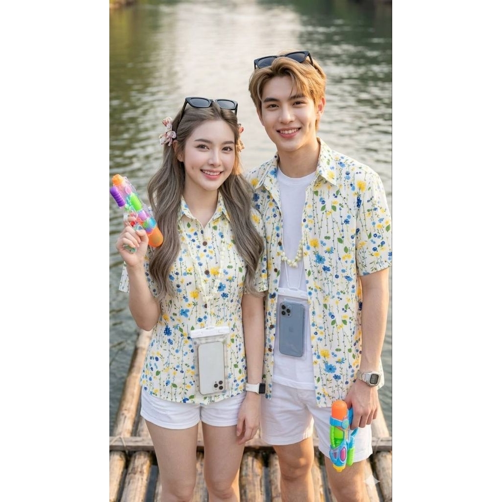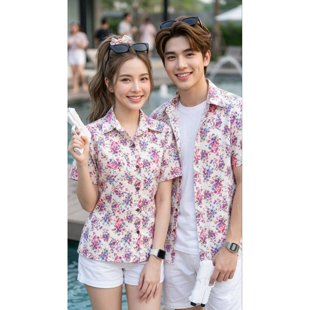 เสื้อลายดอกหญิงชายใส่สงกรานต์..