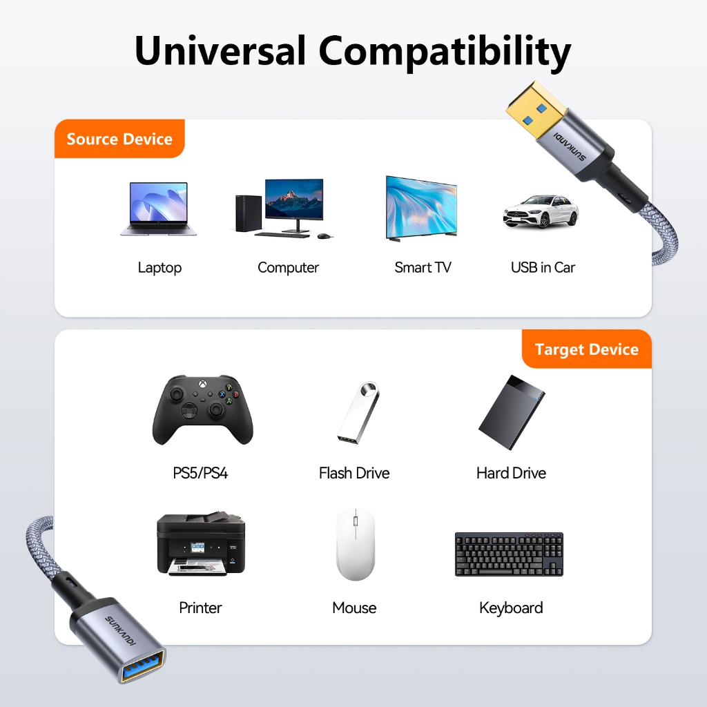 SUNKANDI USB 3.0 Male to USB 3.0 Female Extensions Cable 5Gbps data transfer สําหรับแล็ปท็อปคอมพิวเตอร์สมาร์ททีวี