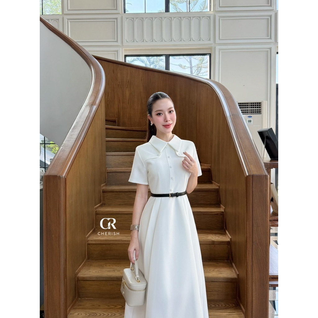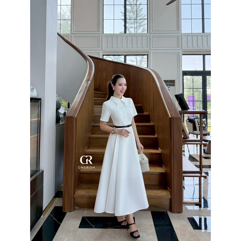 เดรสทรงสวย เดรสไปงานสีขาวดำ Cherish
