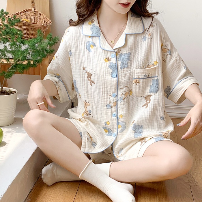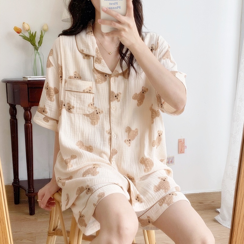 ชุดนอนแม่ท้อง mamaratta - ชุดนอนเปิดให้นมได้ แบบแขนสั้นขาสั้น ผ้ามัสลินใยไผ่นิ่มนุ่ม