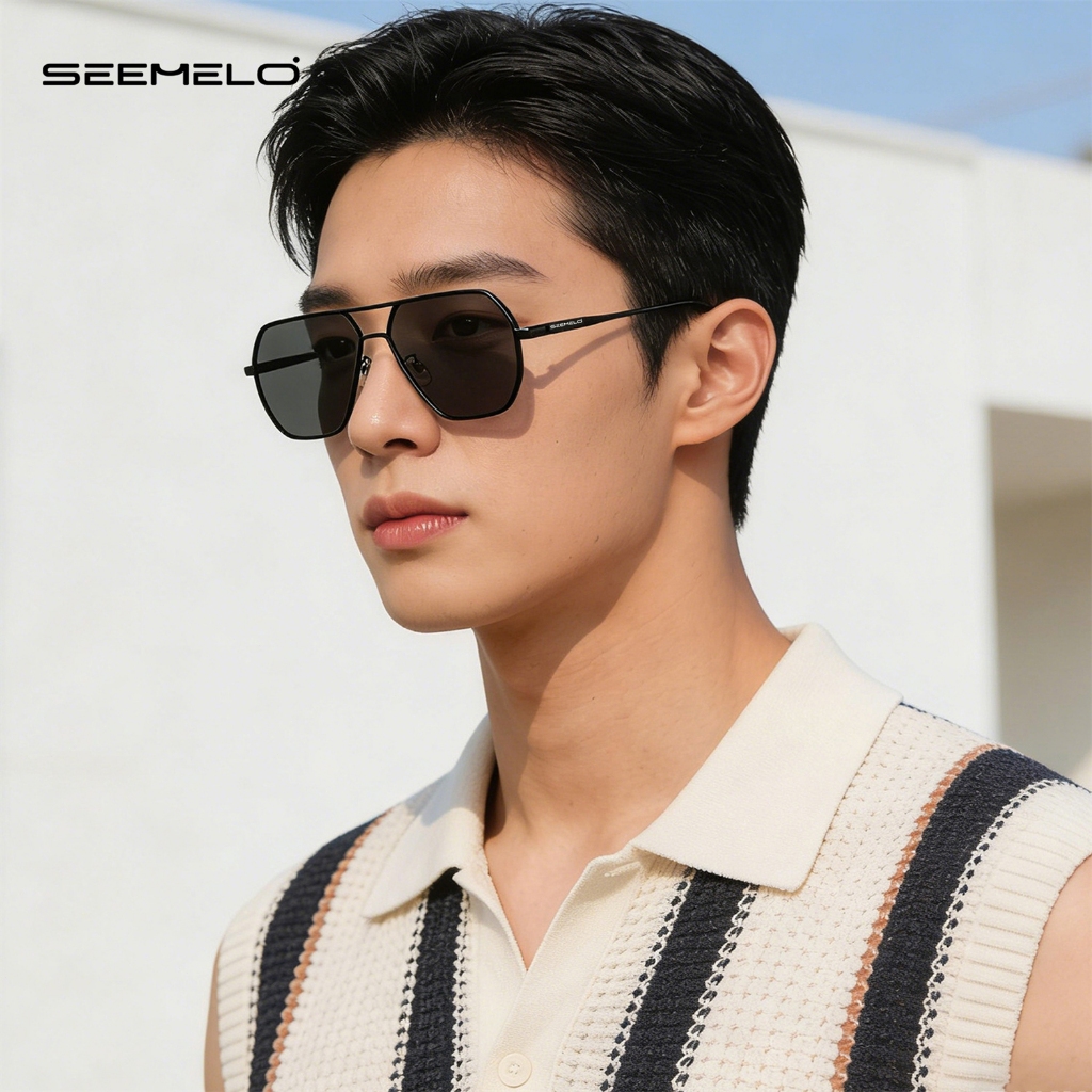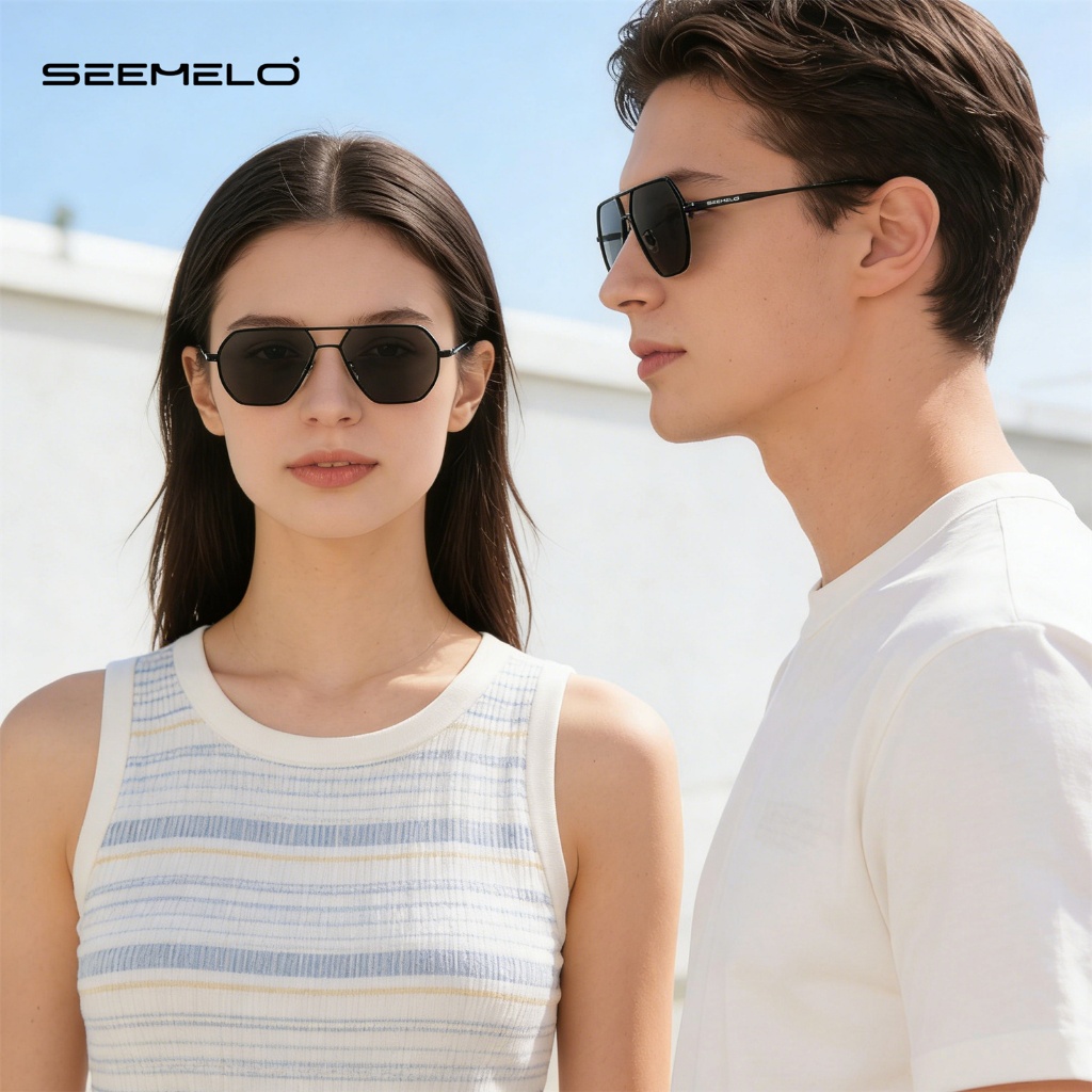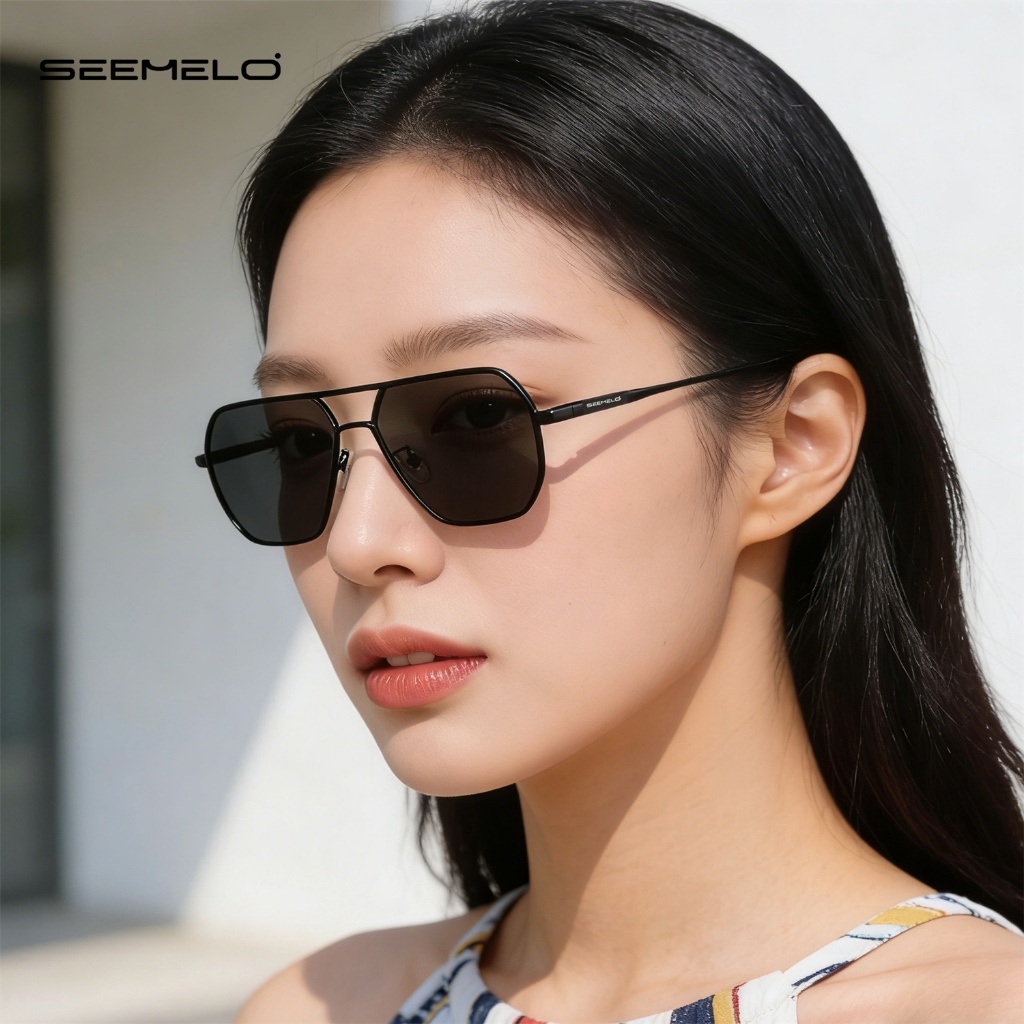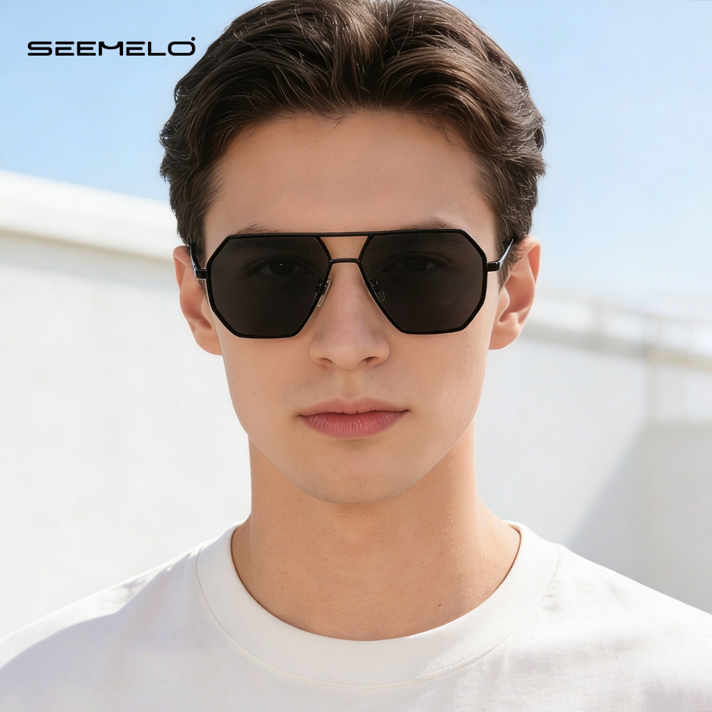 SEEMELO แว่นกันแดดกรอบใหญ่ ผู้ชายและผู้หญิง พลัสติกโพลาไรซ์ สำหรับขับรถ UV400 ปกป้องสายตา