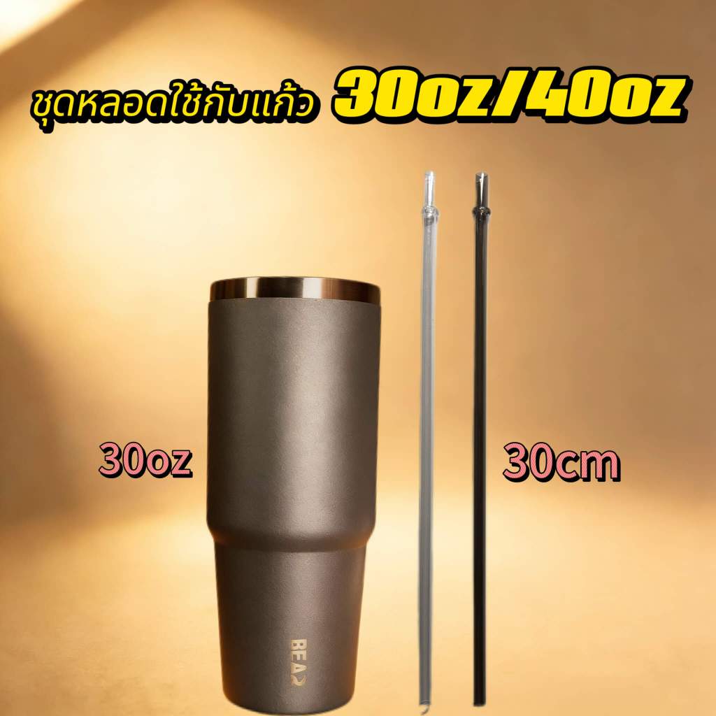 BEAR หลอดสำหรับแก้ว 20/30/40oz ยาว 23/30cm พร้อมแปรงล้าง ปลายหลอดมีตัวกันหล่น Foodgrade