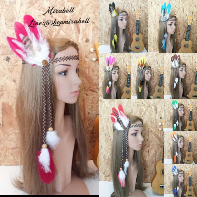 ที่คาดผมขนนก คาดผมสไตล์โบฮีเมี่ยน แต่งเชือกหยักสีน้ำตาล มีหลายสี พร้อมส่งร้านคนไทย