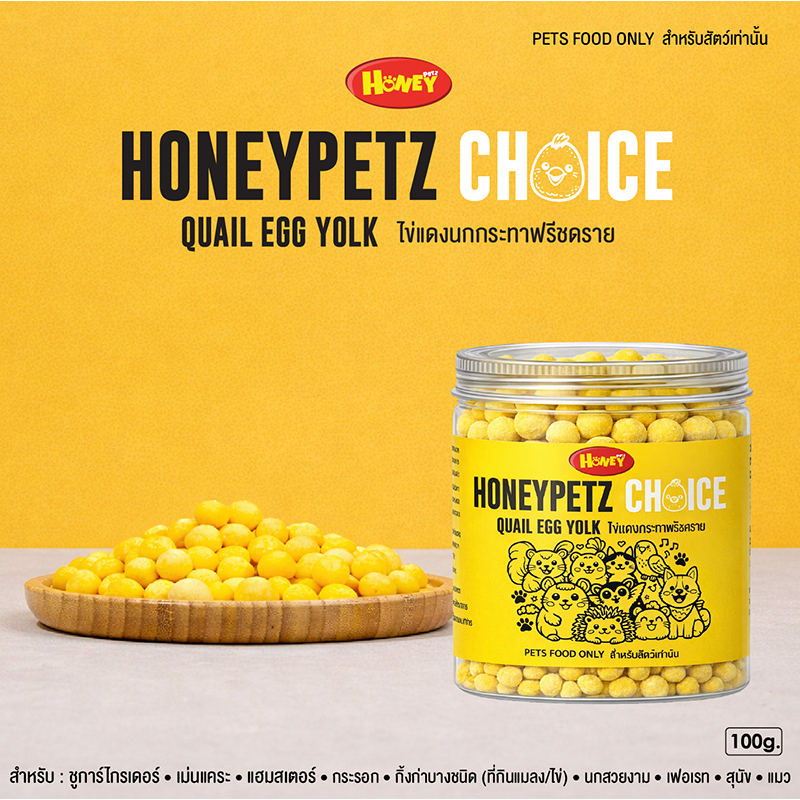 ไข่แดงนกกระทาแท้ 100% ผ่านกระบวนการอบแห้งสะอาด สารอาหารสำหรับ แมว หมา สัตว์เล็ก และลิง
