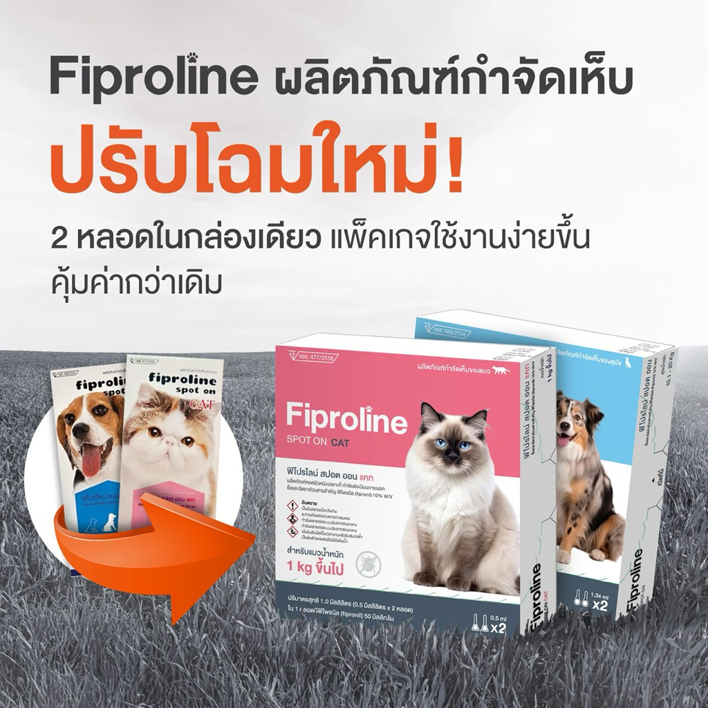(( แพคเกจใหม่ )) Fiproline Spot On 1 แผง 2 หลอด กำจัดเห็บหมัด สำหรับสุนัขและแมว