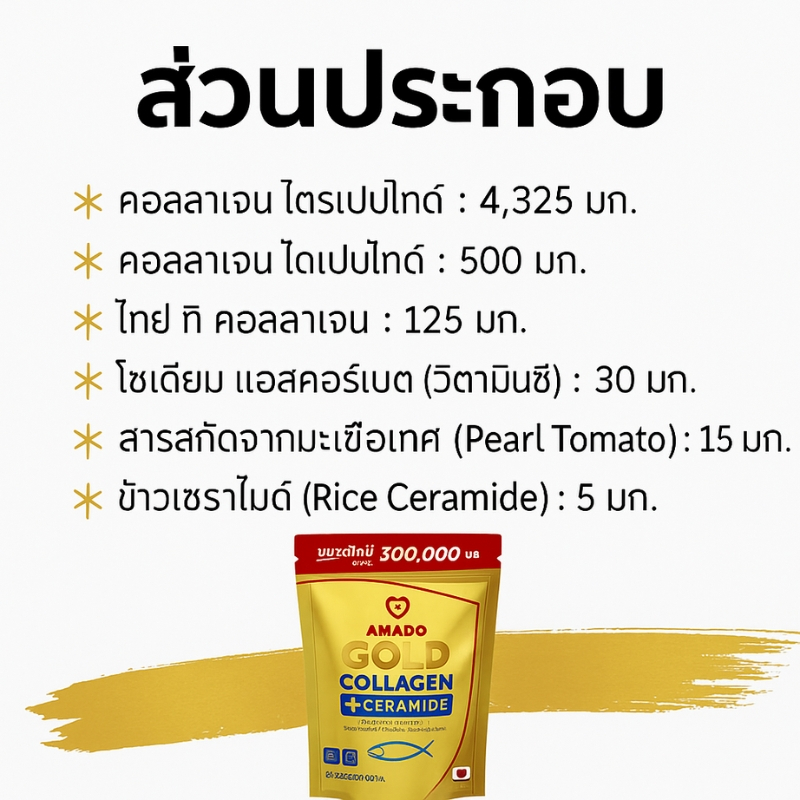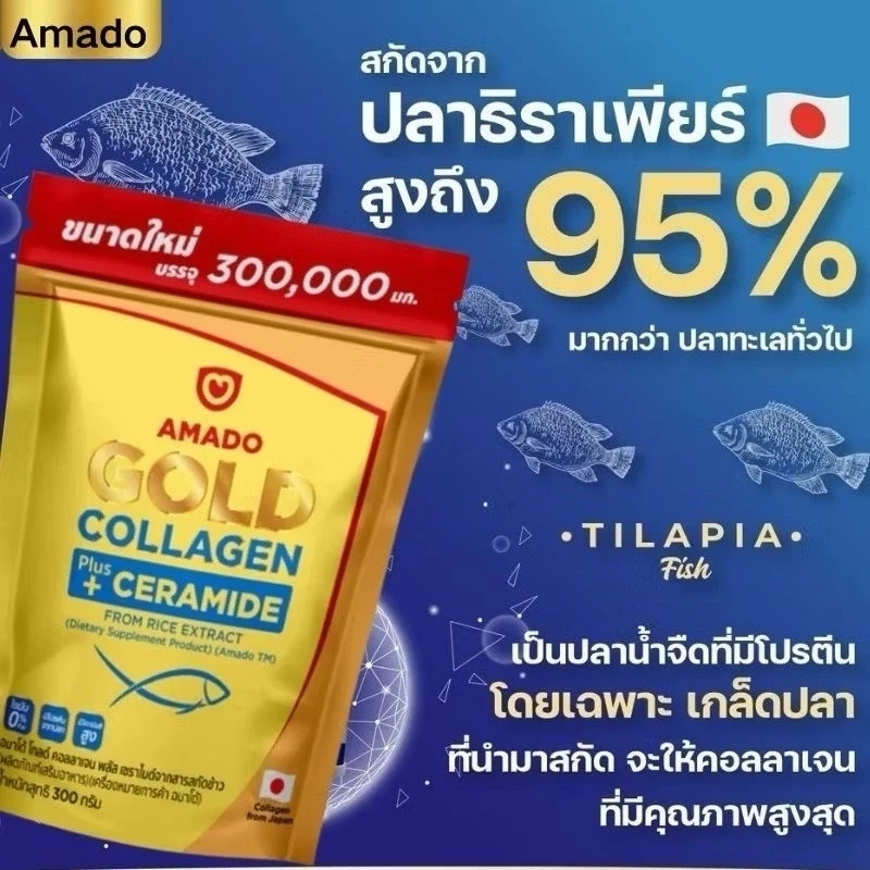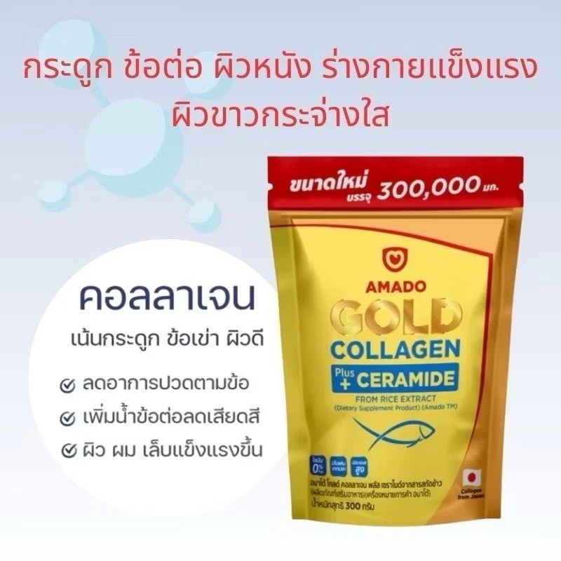 【ซื้อ 2 แถม 1】Amado Gold Collagen + Ceramide 300g | อมาโด้ โกลด์ คอลลาเจน เซราไมด์ คอลลาเจนเกรดพรีเมียม บำรุงผิวและกระดู