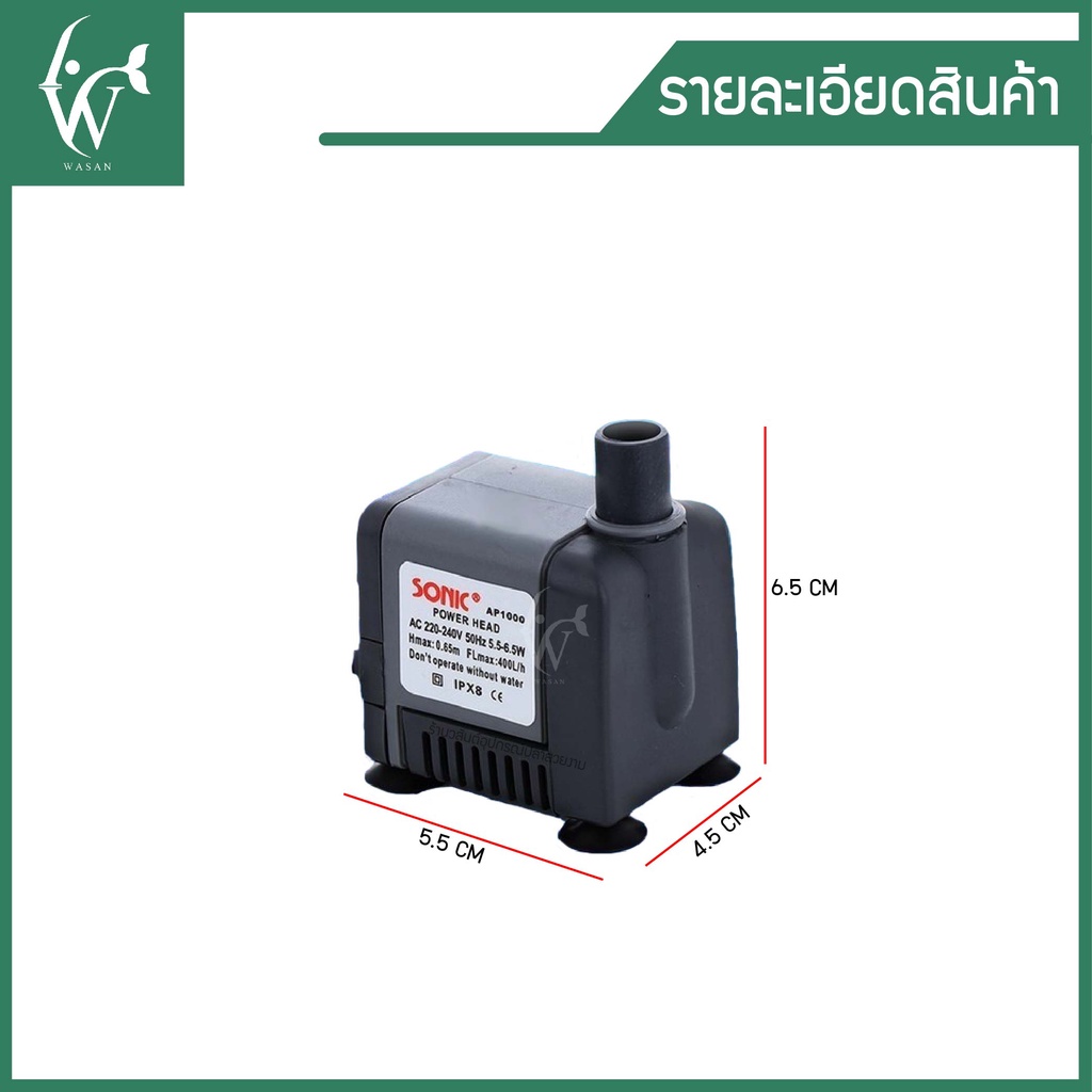 ปั้มน้ำ SONIC AP-1000 สินค้านำเข้าของแท้ 100 % BY วสันต์อุปกรณ์ปลาสวยงาม รับประกันคุณภาพ