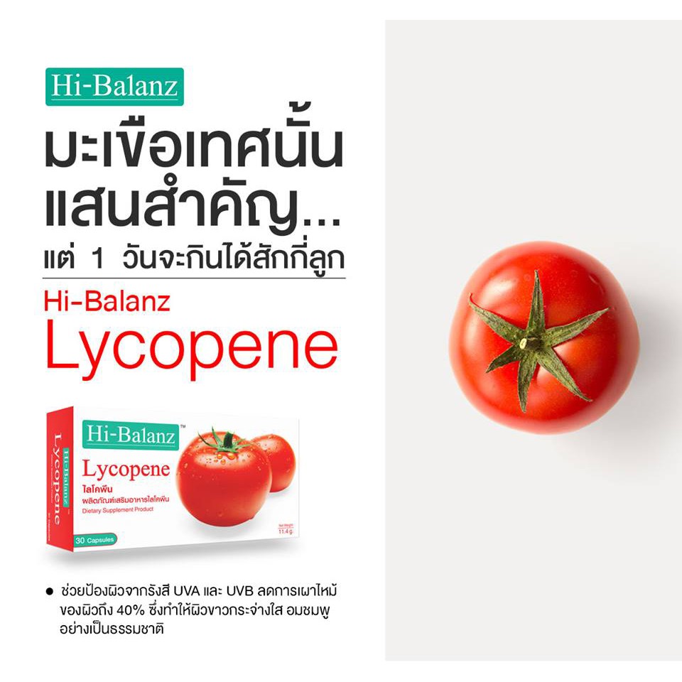 [1แถม1]Hi-Balanz Lycopene สารสกัดจากมะเขือเทศ 30 แคปซูล[1กล่อง/2กล่อง]