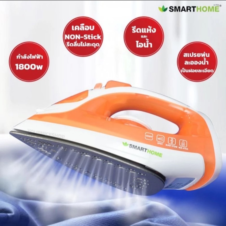 SMART HOME เตารีดไอน้ำกำลังไฟ 1,800 วัตต์ รุ่น SSIR-925/ 907 /OTTO รุ่น EI-605 (คละสี)