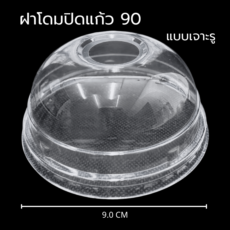 ฝาโดมใส PET ปาก 90 มม. เจาะรู I ไม่เจาะรู (40 แพ็ค/ลัง)