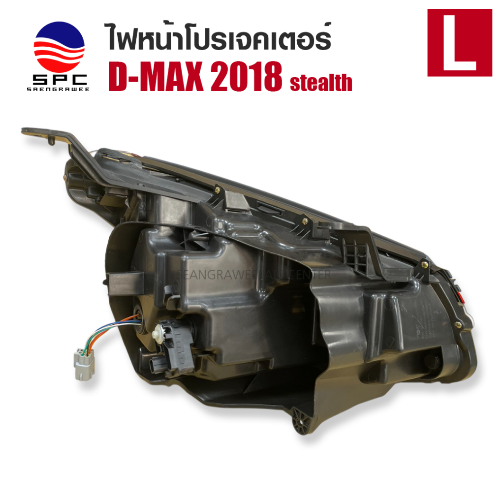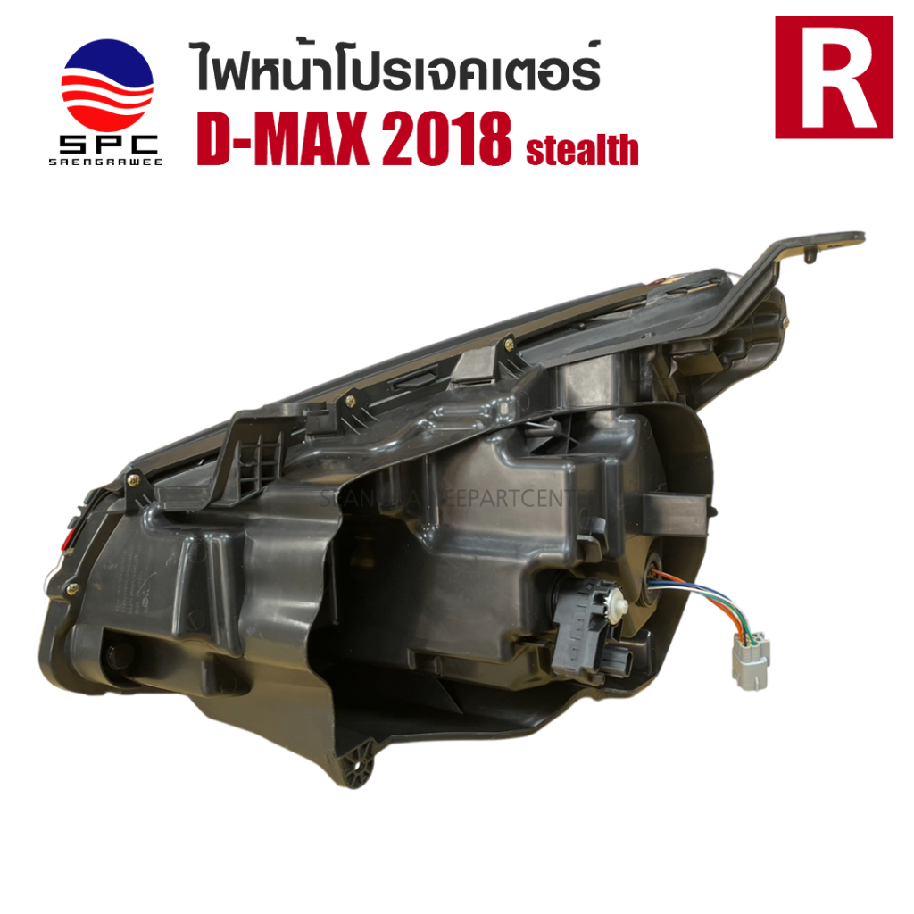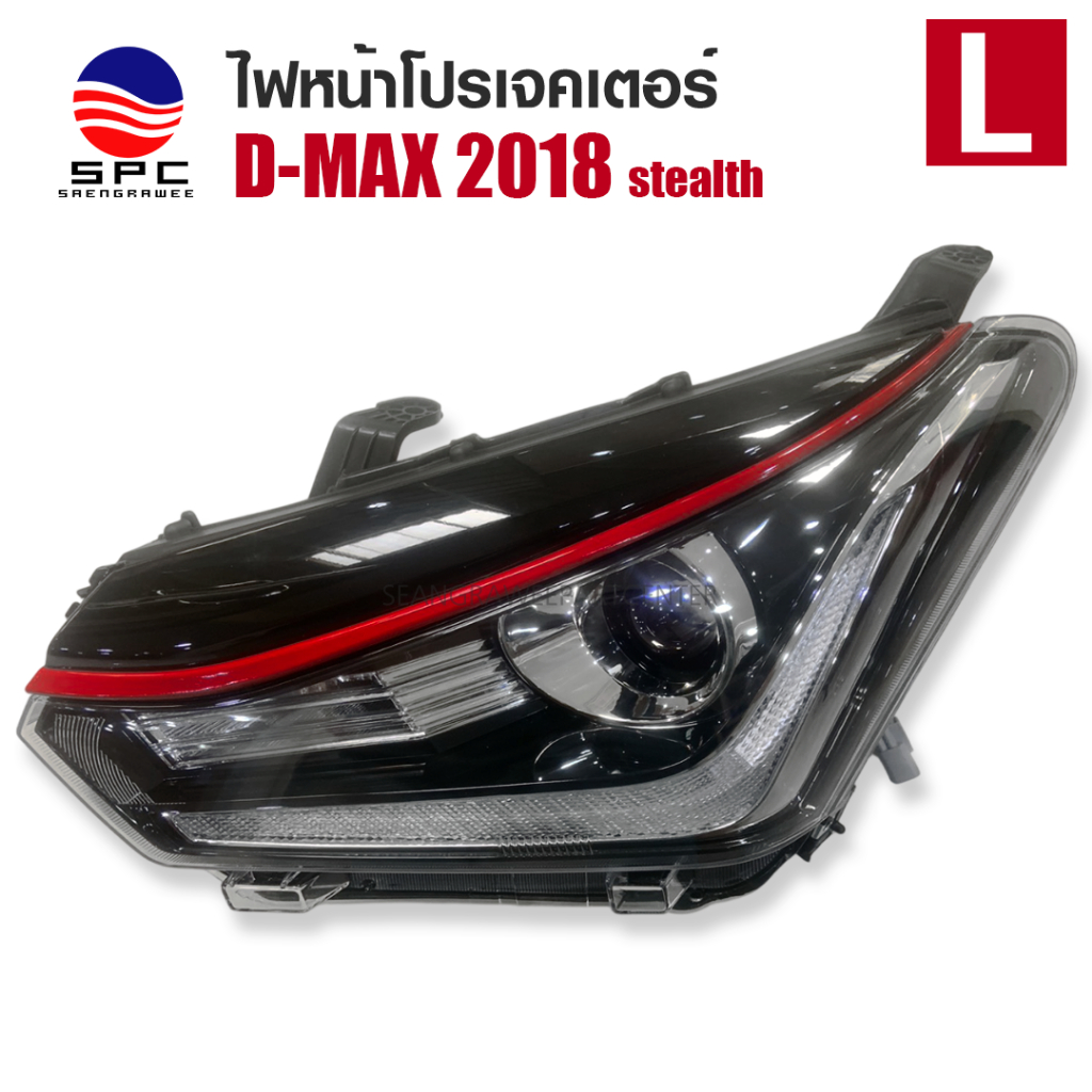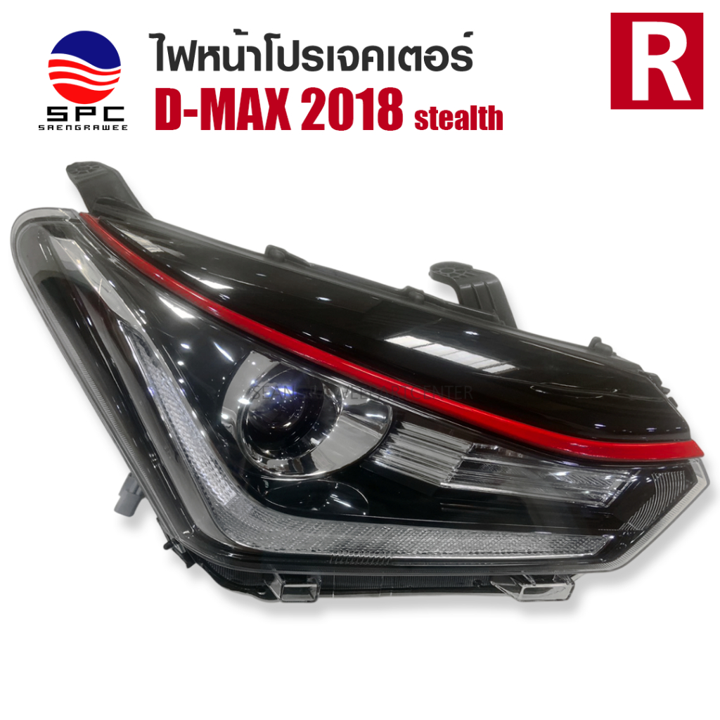 โคมไฟหน้าโปรเจคเตอร์ ทรงห้าง รถยนต์ รุ่น ISUZU D-MAX 2018 รุ่น Stealth คิ้วแดง คาดสีดำเงา