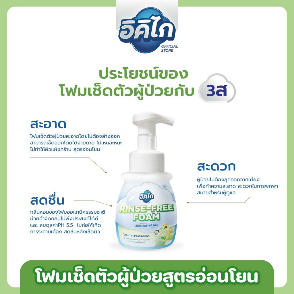 อิคิไก รินซ์ ฟรี โฟม โฟมเช็ดตัวผู้ป่วยไม่ต้องล้างออก สูตรอ่อนโยน แพ็กคู่