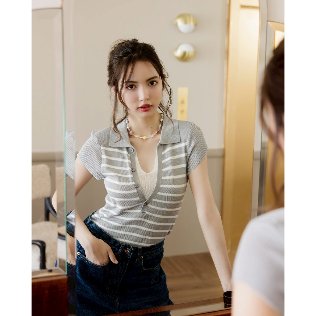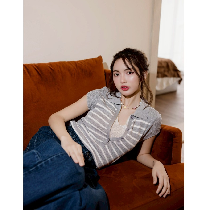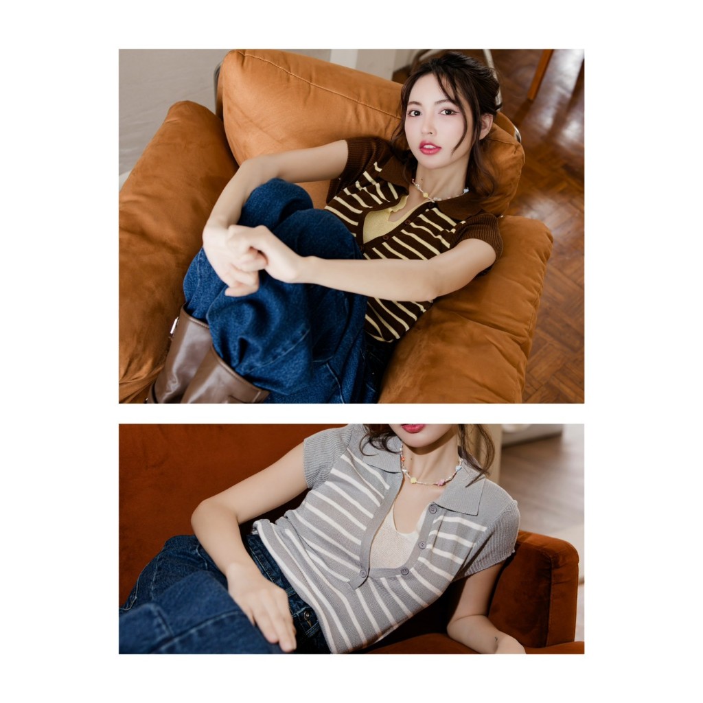 Flower brown : Suvee layer top เสื้อไหมพรมเลเยอร์ลายทาง