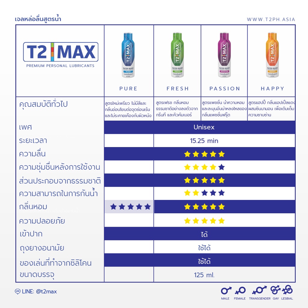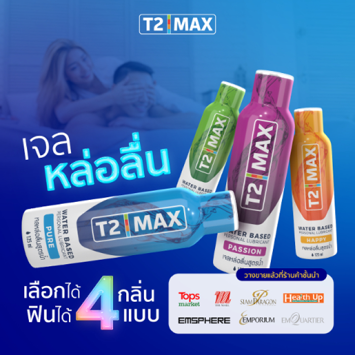 [ไม่ระบุชื่อสินค้า] T2Max ทีทูแม็กซ์ เจลหล่อลื่น 4 กลิ่น สูตรน้ำ อ่อนโยน แห้งช้า กินได้ 125 ml