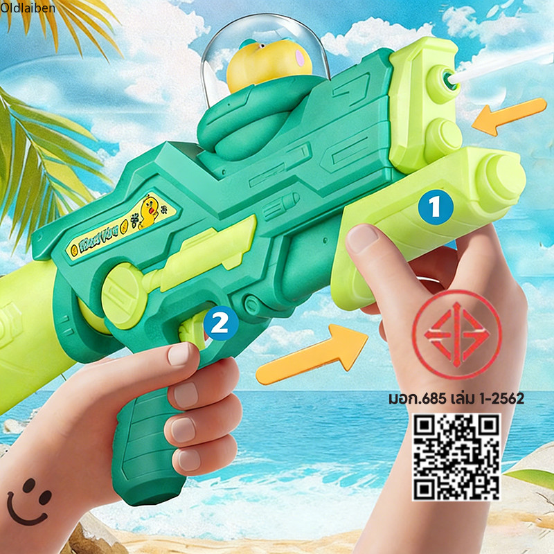 ปืนฉีดน้ำสงกรานต์ ปืนฉีดน้ำเด็ก หัวฉีดคู่ 1500ML ของเล่นกลางแจ้ง