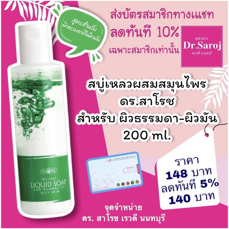 สบู่เหลว ดร.สาโรช ผิวธรรมดา-ผิวมัน สบู่ล้างหน้า ส่งฟรี