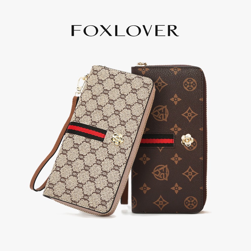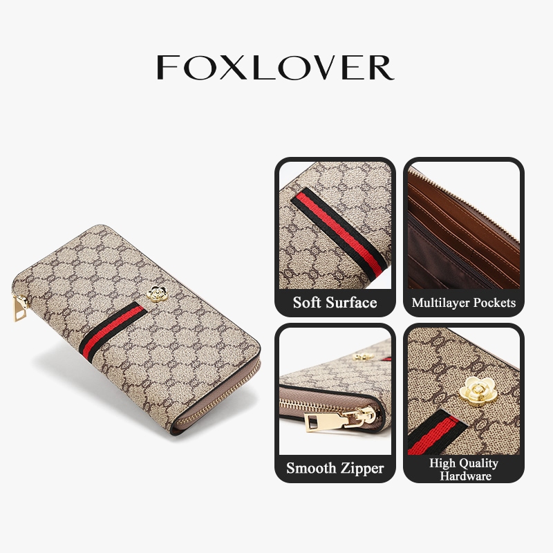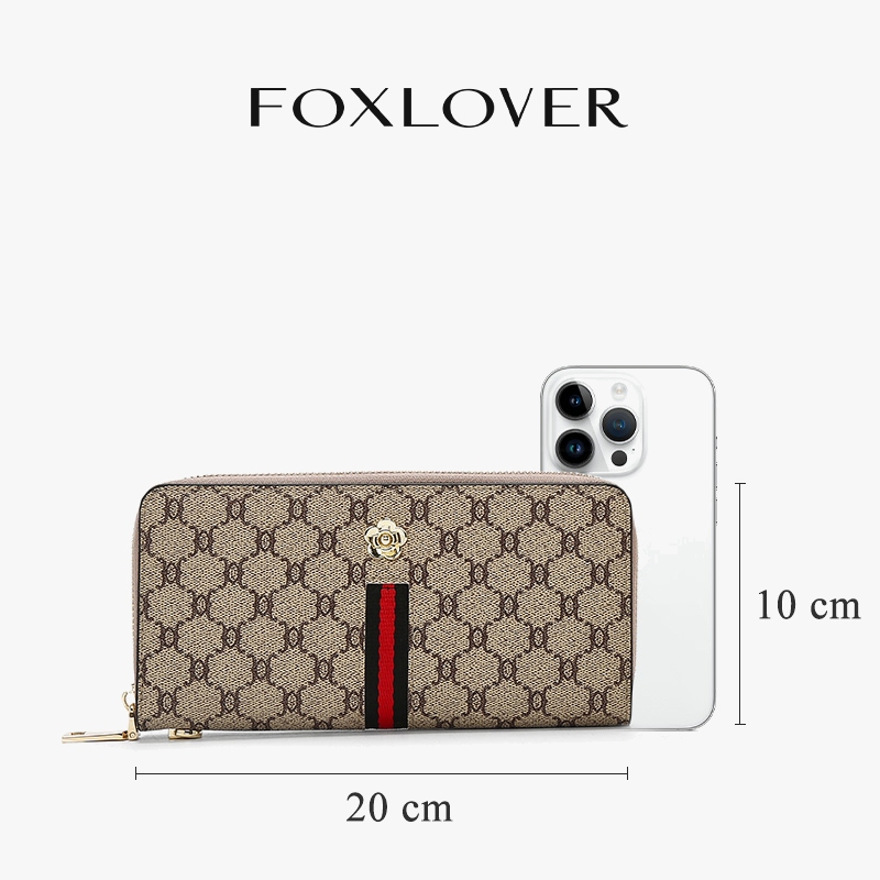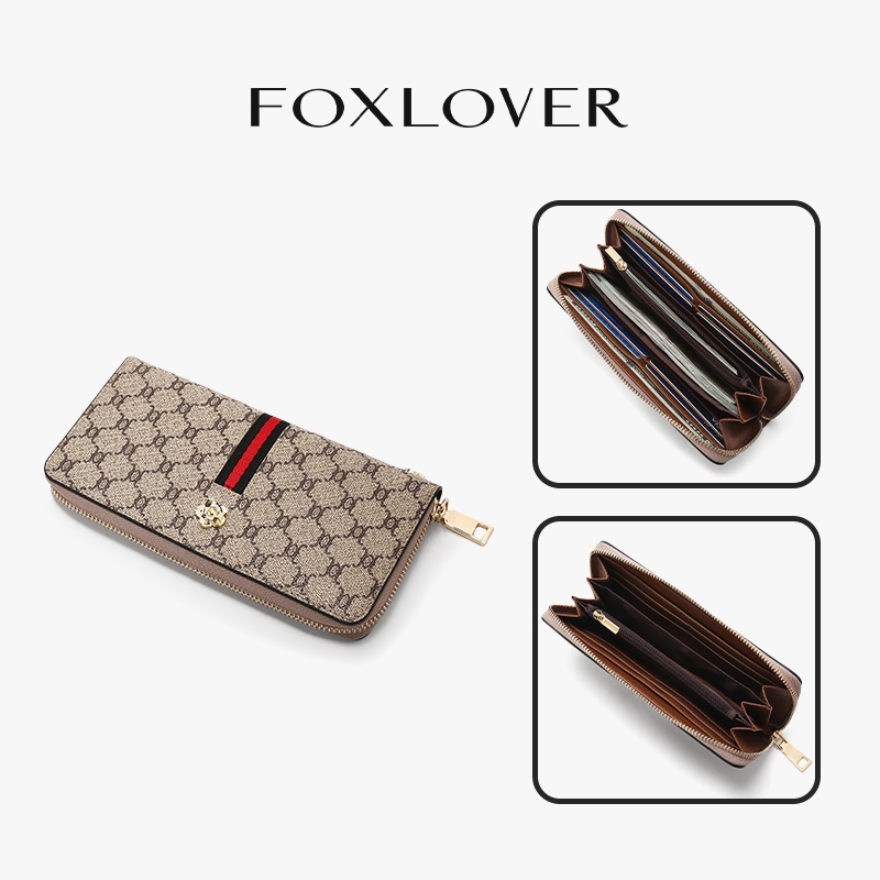 FOXLOVER กระเป๋าสตางค์ใบยาวสำหรับผู้หญิง ลายทางคลาสสิก มีซิป