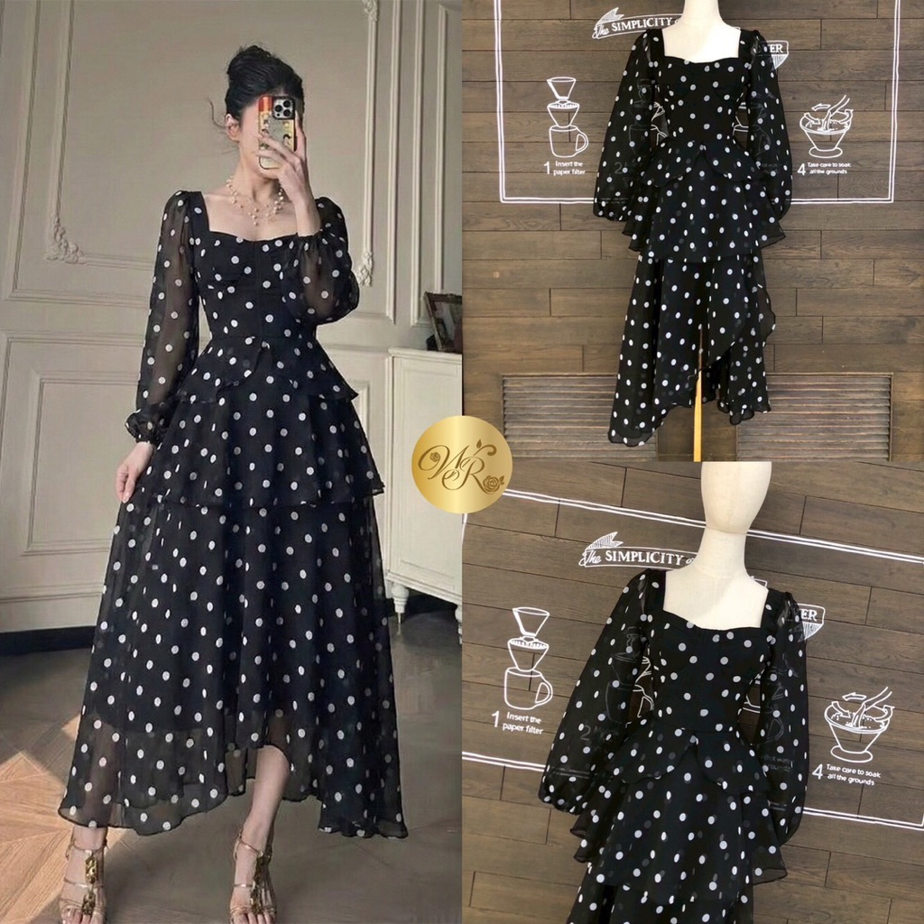 Widelia@Real Maxi dress แม็กซี่เดรสตัวยาวแขนยาว คอเหลี่ยม