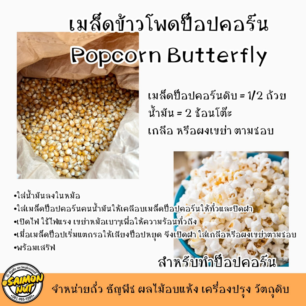 เมล็ดป๊อบคอร์น Popcorn เมล็ดข้าวโพดสำหรับทำป็อปคอร์น (butterfly) บัตเตอร์ฟราย
