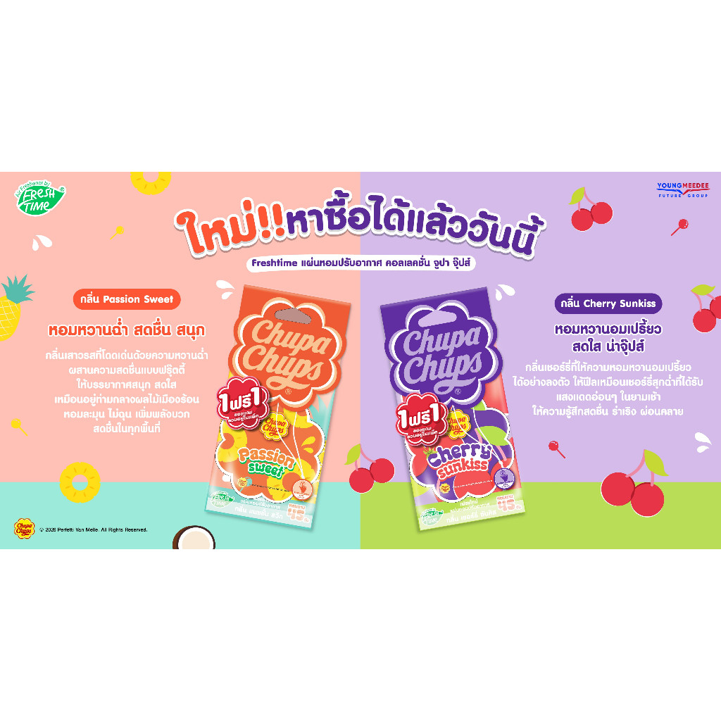 FreshTime x Chupa Chups แผ่นน้ำหอมปรับอากาศ แผ่นหอมแขวนตู้ ลดกลิ่นอับ ปรับอากาศ มีกลิ่นให้เลือก