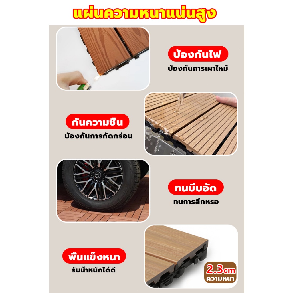 🔥ติดตั้งใน 1 วินาที🔥 แผ่นไม้ปูพื้นระเบียง ขนาด 30x60CM กันน้ำ กันลื่น ทนการกัดกร่อน แผ่นปูพื้นสวน