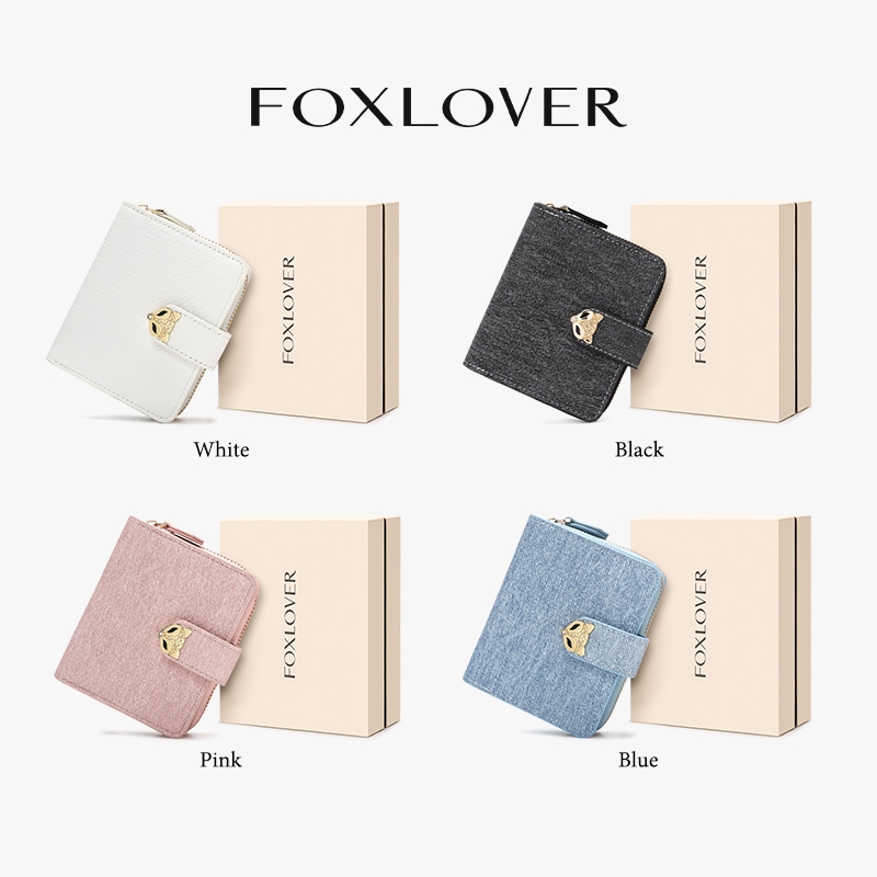 FOXLOVER กระเป๋าสตางค์ใบสั้นผู้หญิง กันน้ำ มี 11 ช่องเสียบการ์ด เรียบง่าย มีสไตล์ และมาพร้อมกล่องของขวัญ