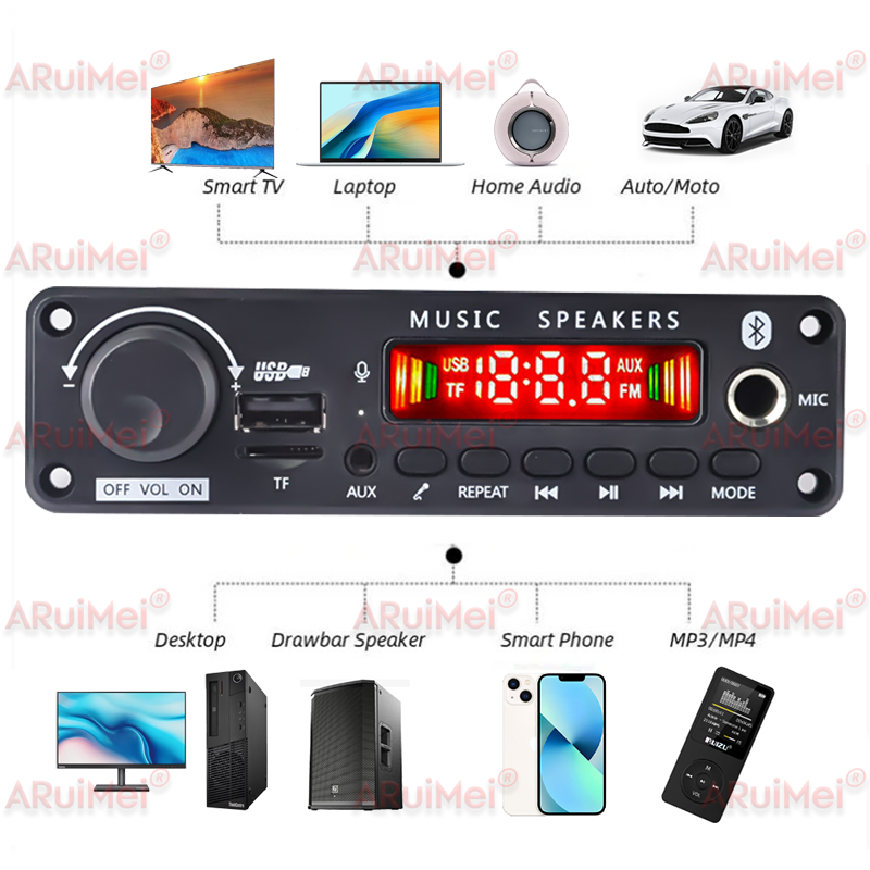 โมดูลเครื่องขยายเสียงบลูทูธ 5.3 50W พร้อมเครื่องเล่น MP3 วิทยุ FM USB TF และการบันทึกไมโครโฟน