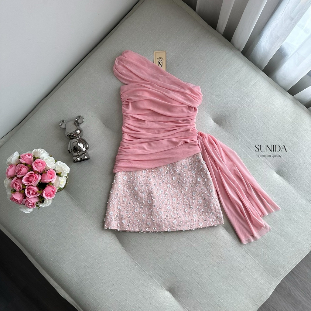 ชุดเซท 2 ชิ้น เสื้อปาดไหล่สีชมพู (ทักแชตสอบถามสต็อกก่อนสั่งน๊า)