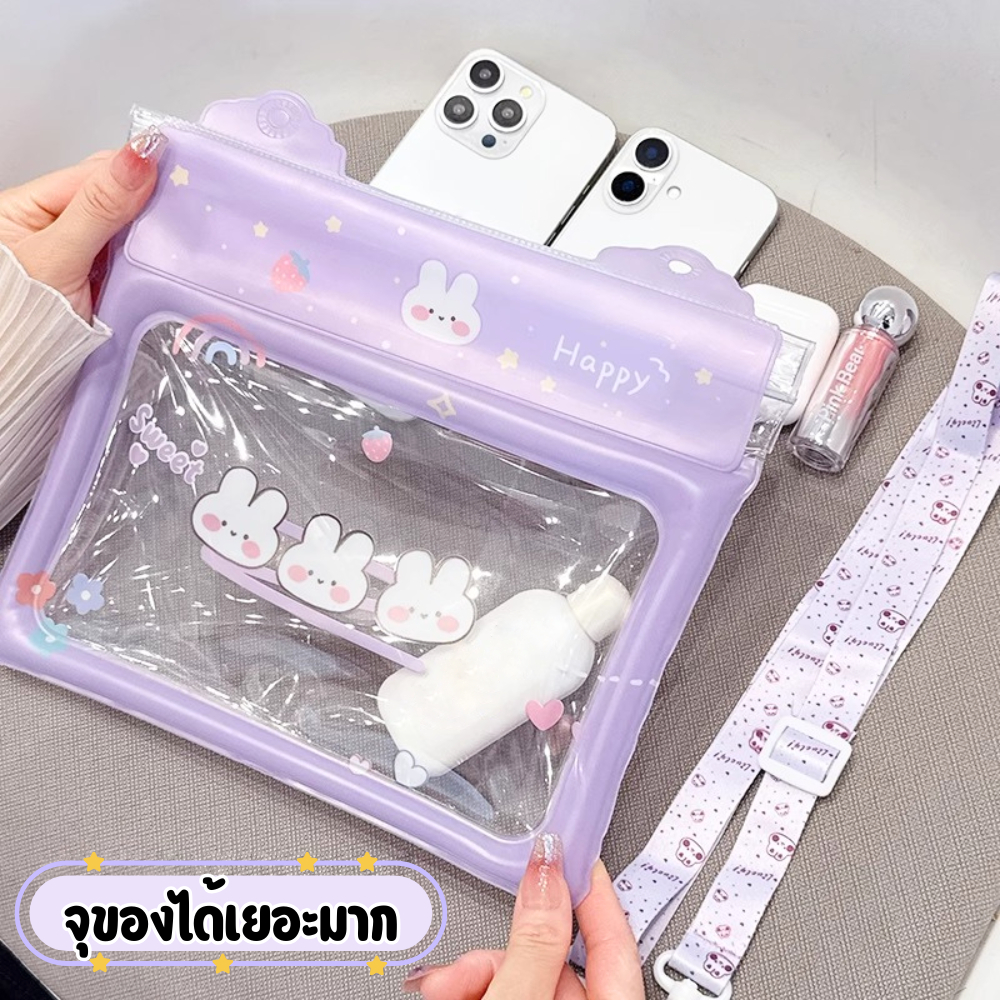 luckythai กระเป๋ากันน้ำ PVC แบบสะพายข้าง ซีล 3 ชั้น กันน้ำ ลอยน้ำได้ ใส่มือถือ เครื่องสำอาง ลายน่ารัก