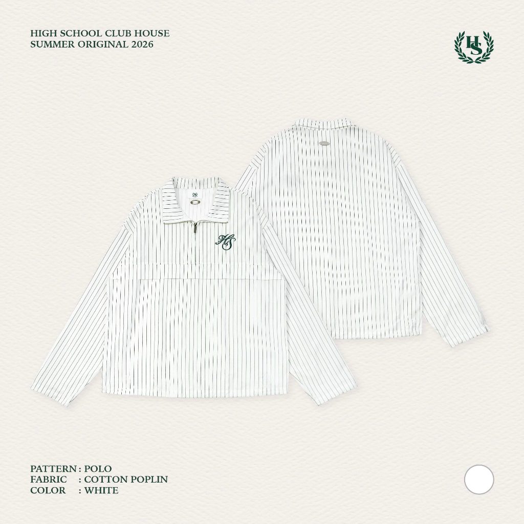 Highschool Summer Collection : Clubhouse Stripe poplin polo Zip-up เสื้อโปโลผ้าป๊อปลายริ้ว- TPB07056