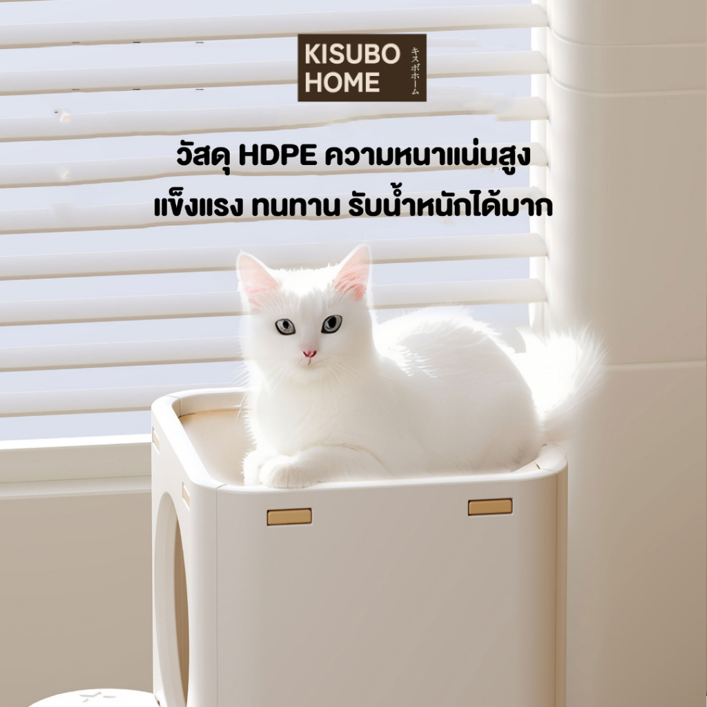 Kisubo Home คอนโดแมว 2 ชั้น คอนโดสัตว์เลี้ยง วัสดุ HDPE BPA Free ทำความสะอาดได้ ไม่ขึ้นเชื้อรา