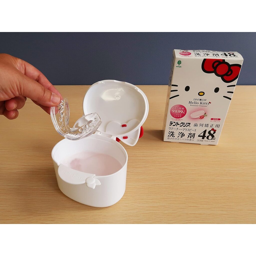 เม็ดทำความสะอาดรีเทนเนอร์ลาย Hello Kitty Kiyo Jochugiku Hello Kitty Dentclear จากญี่ปุนกล่อง 48 เม็ด