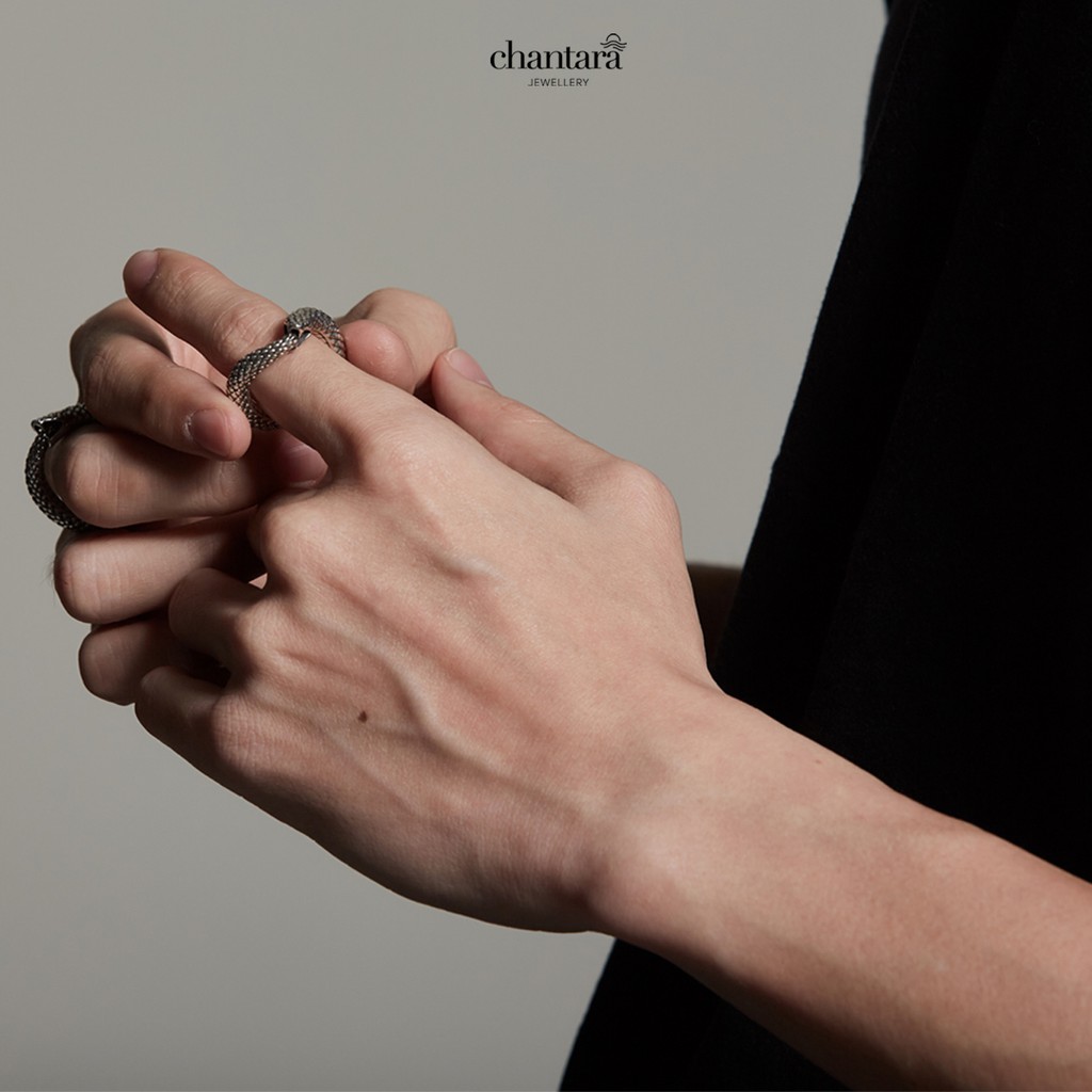 CHANTARA - แหวนงู "Ouroboros Ring" อัญมณีแห่งโชคลาภ แหวนเงินรมดำ ฟรีผ้าเช็ด